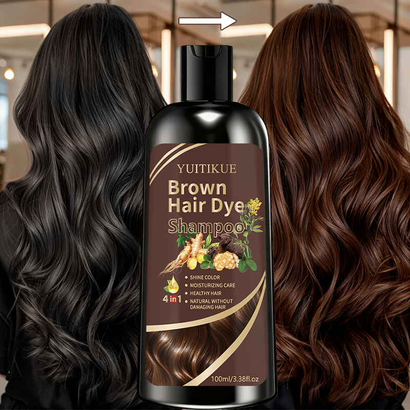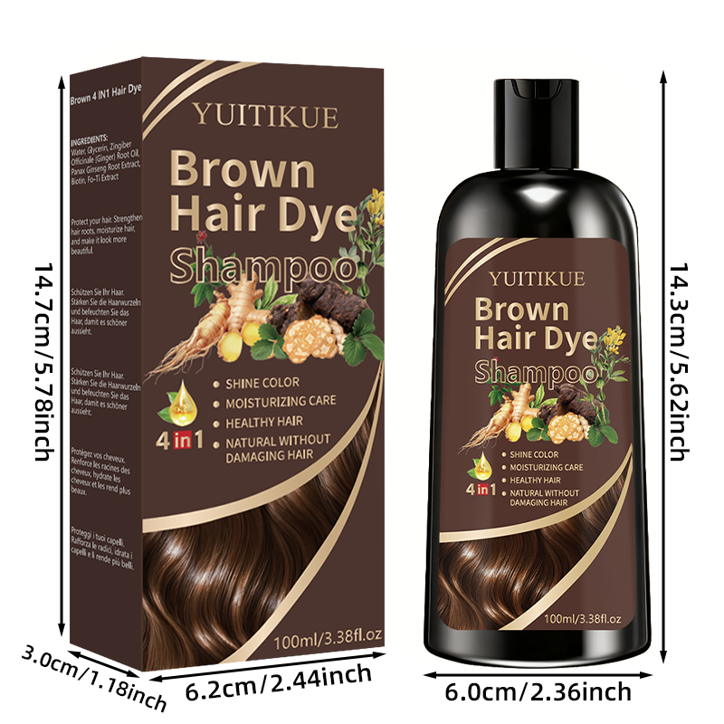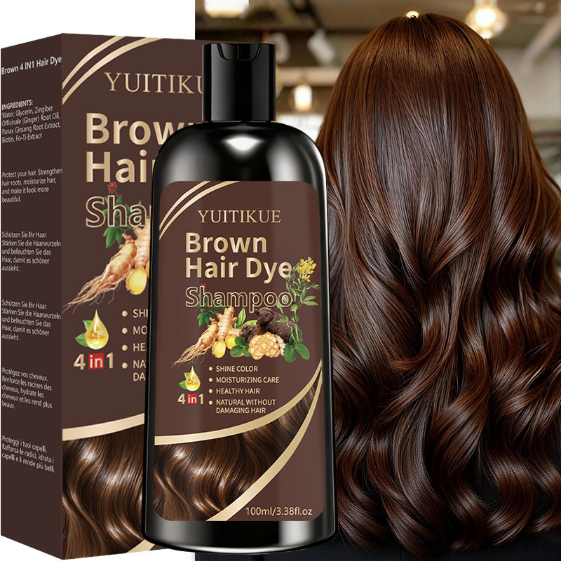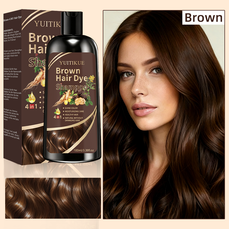 YUITIKUE Brown Hair Dye Shampoo, Bright Color, Moisturizing Care for Healthy Hair, 4-in-1 Natural and Damage-Free Formula