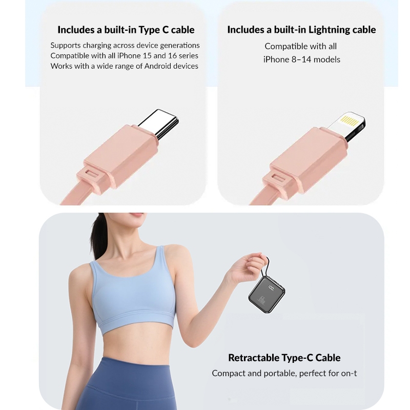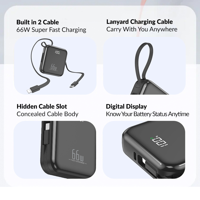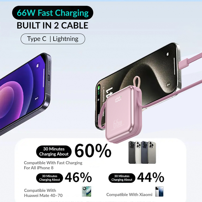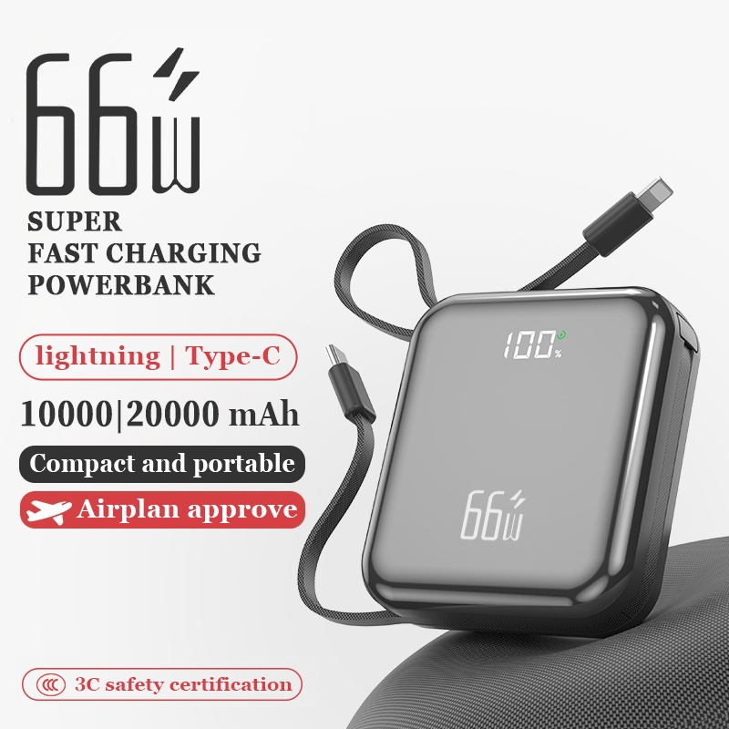 Xiaom 66W Powerbank Fast Charging Built in Cable for Type C iPhone 20000mAh Portable Power Bank