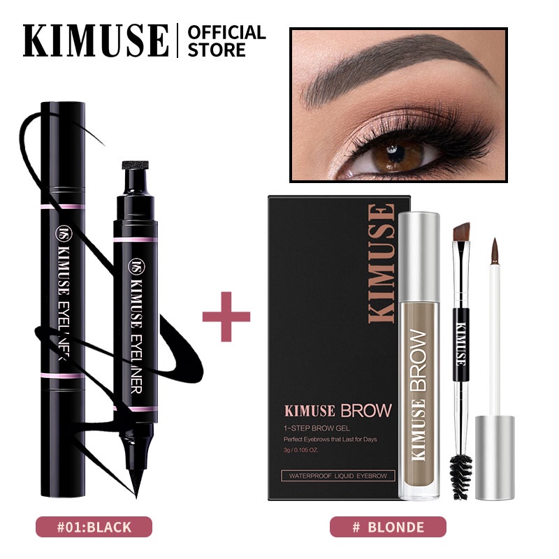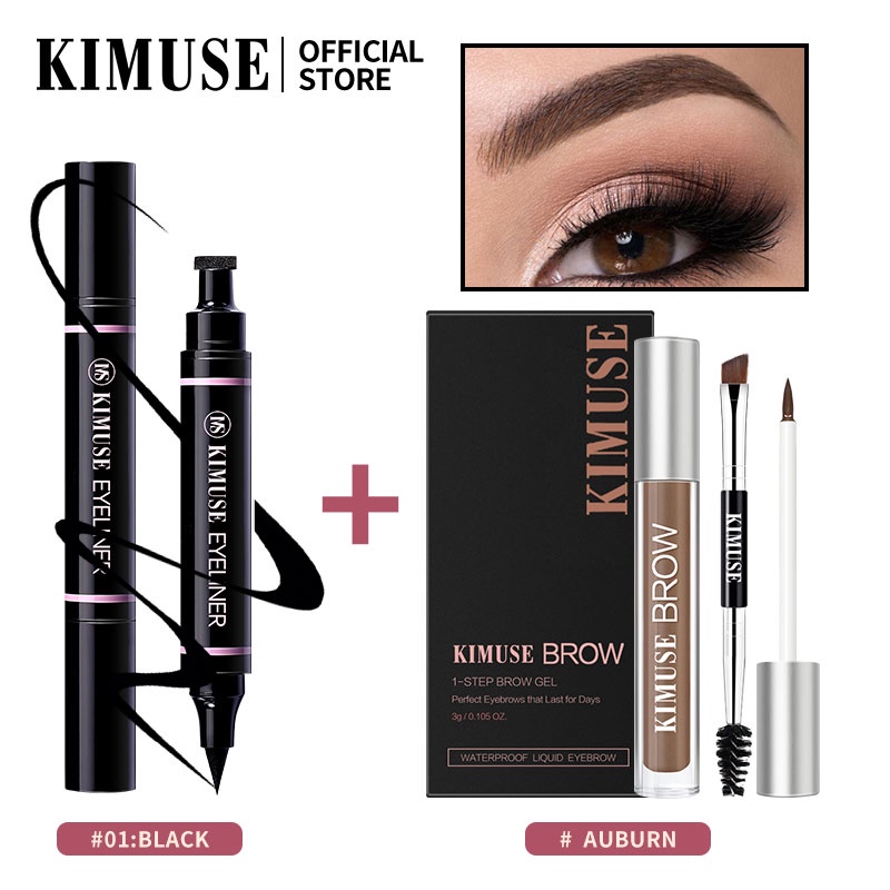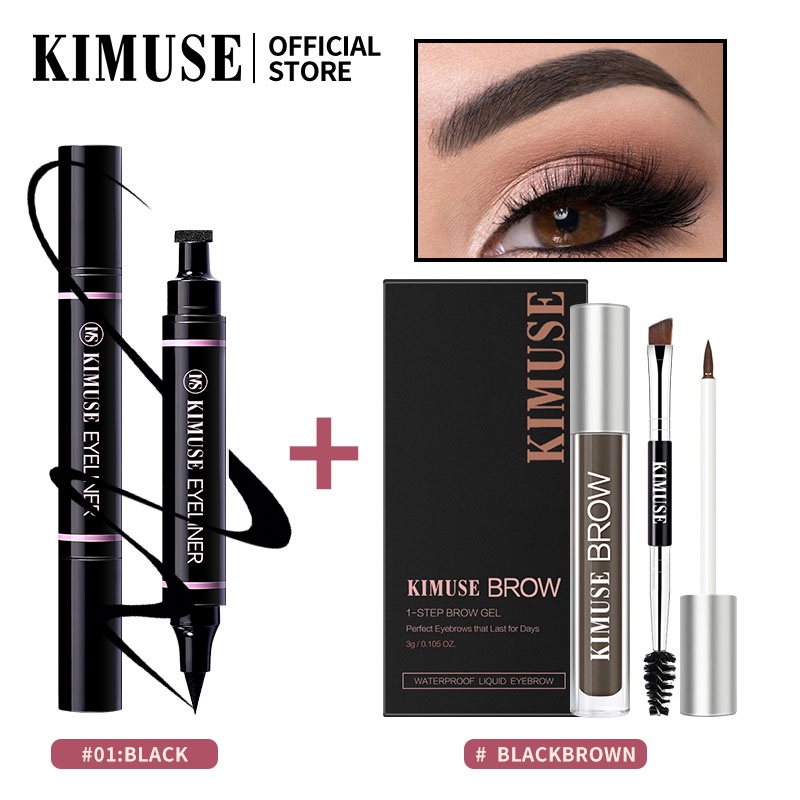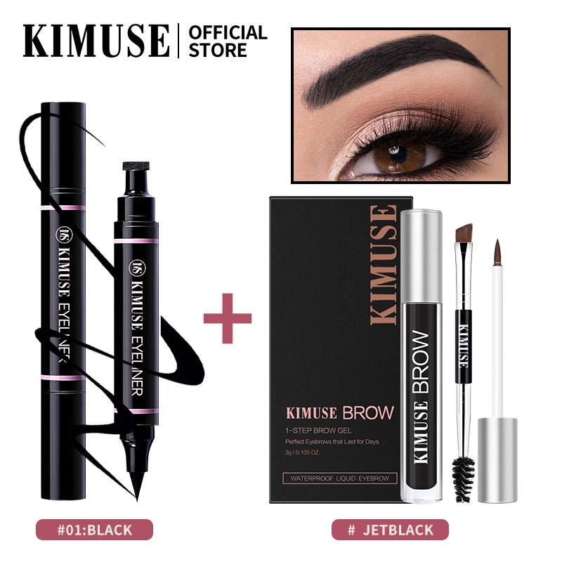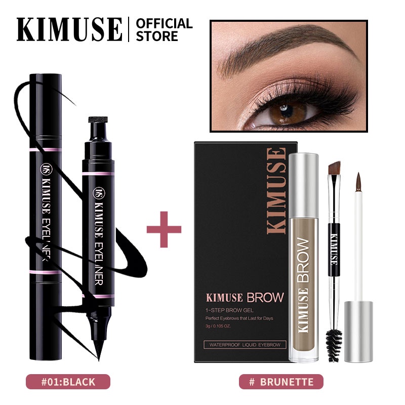 KIMUSE MakeUp Set 2pcs/set Double Head Waterproof Stamp Eyeliner + 5 Colors Long Lasting Gel Lasting Eyebrow Cream Makeup Set