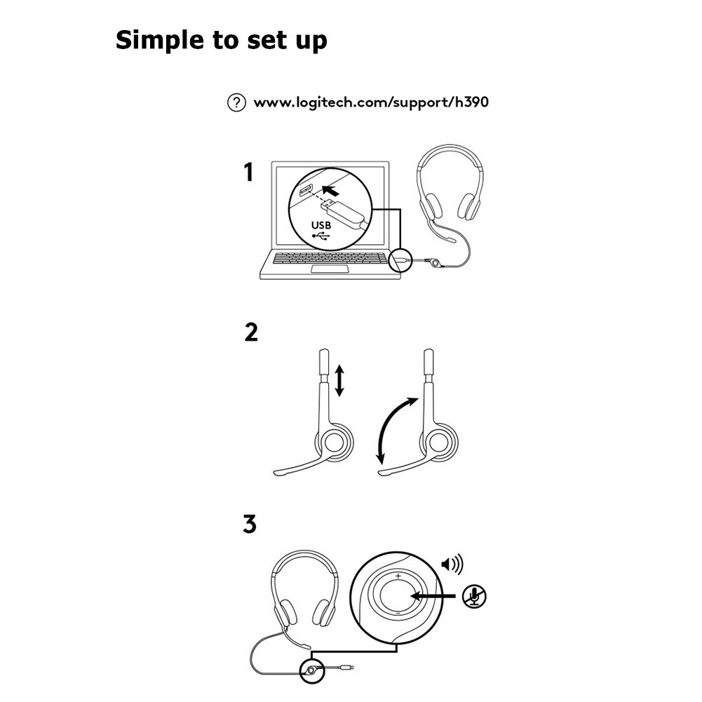 Logitech H390 Wired Headphones USB Computer Noise Cancelling Headset With Microphone
