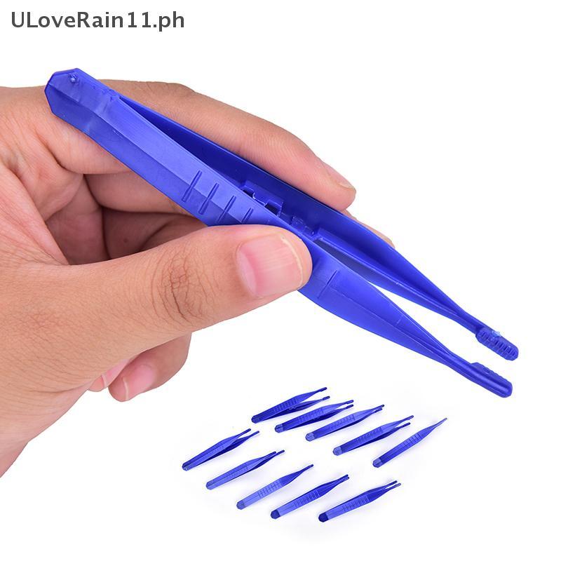 ULoveRain 10pcs Disposable Medical First Aid Tweezer Small Plastic Tweezers Blue PH