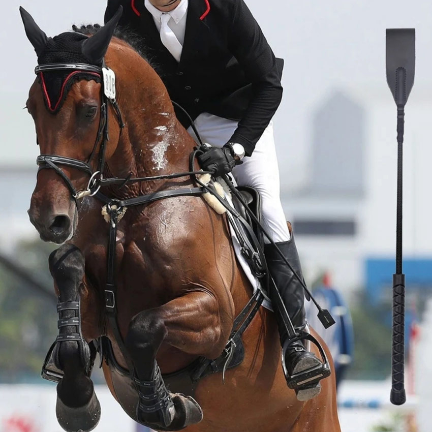 Durable Equestrian Riding Crop PU Leather Horse Whip Lightweight Training Supplies Saddle Boot