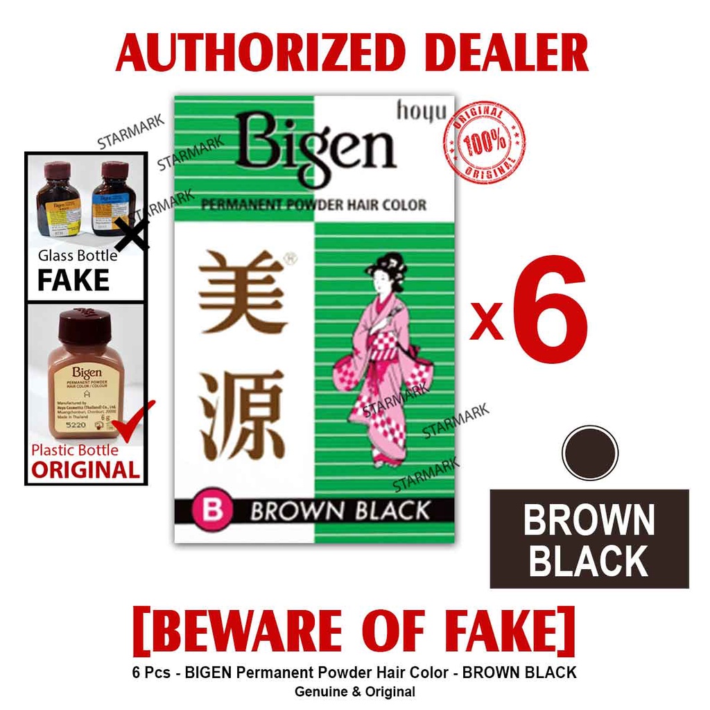 BIGEN Permanent Powder Hair Color BROWN BLACK Authentic Hoyu - 6 Pcs