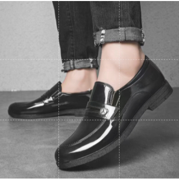 Durable Rubber Black Shoes for Men Glossy Shiny Wet Look Charol Shoes For men