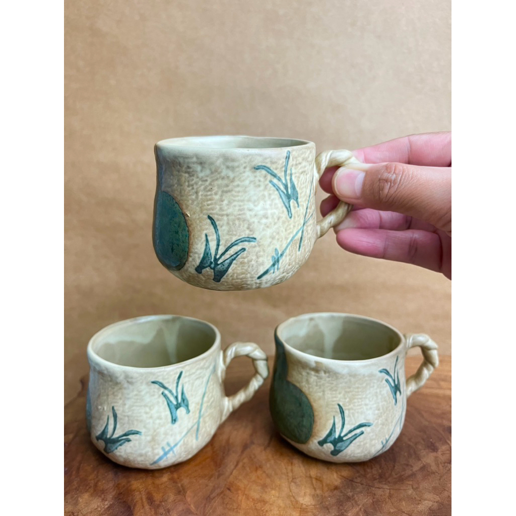 japan surplus handmade oribe ware handpainted coffee cup or teacup sold per piece
