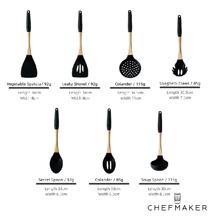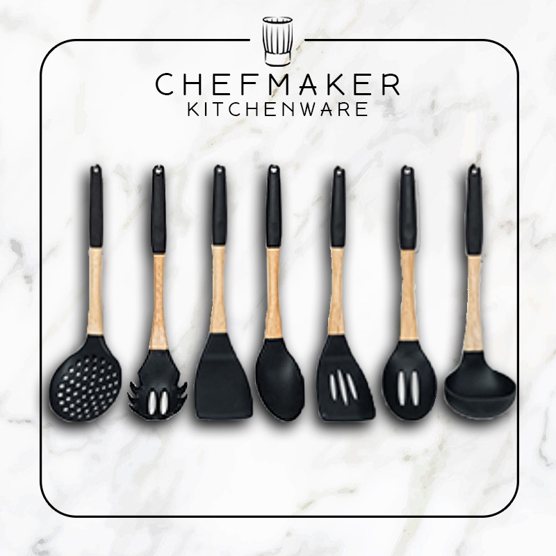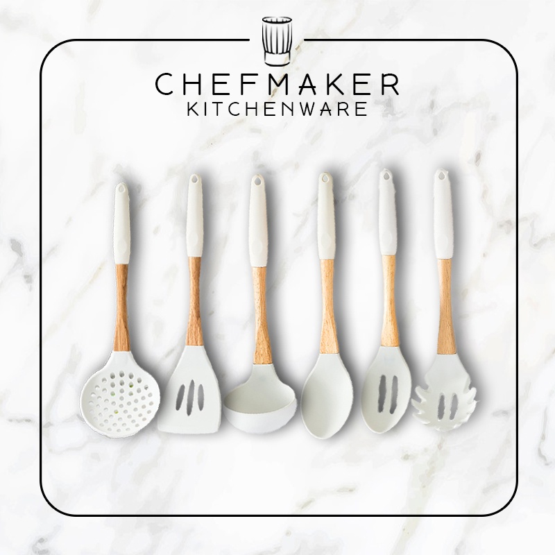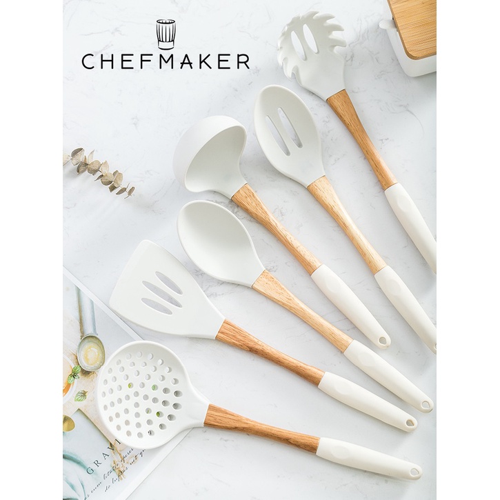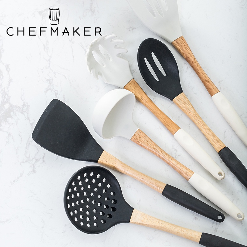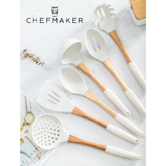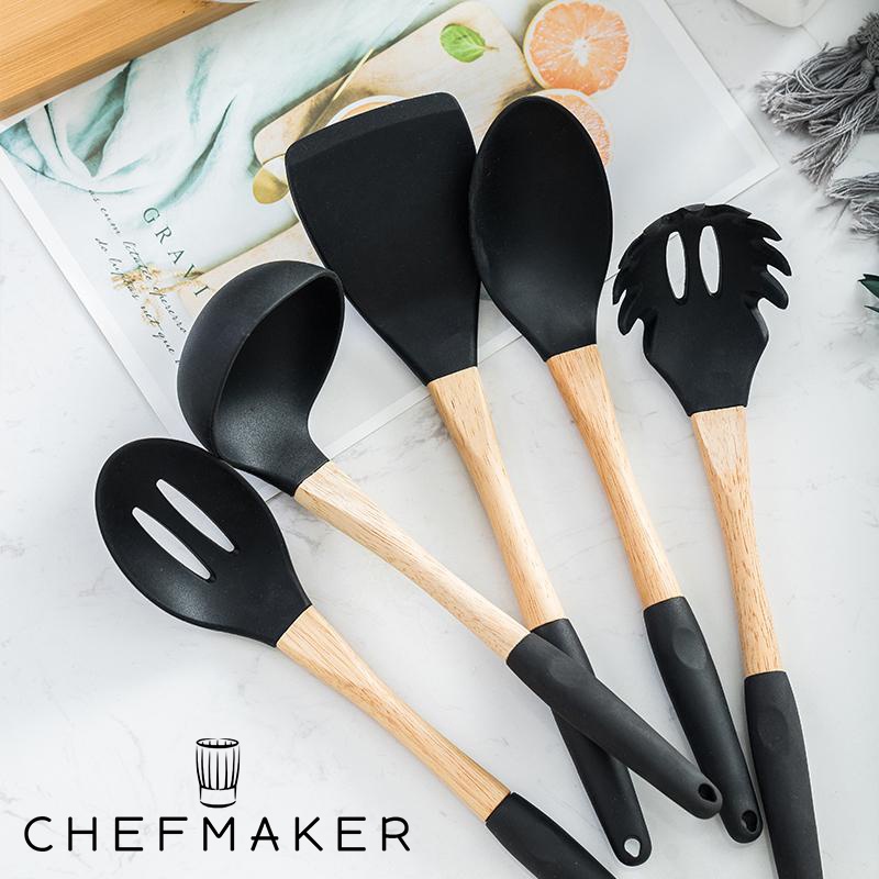 CHEFMAKER Nordic Silicone Wooden Kitchen Utensils Tools Set
