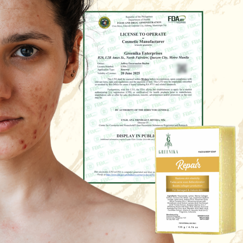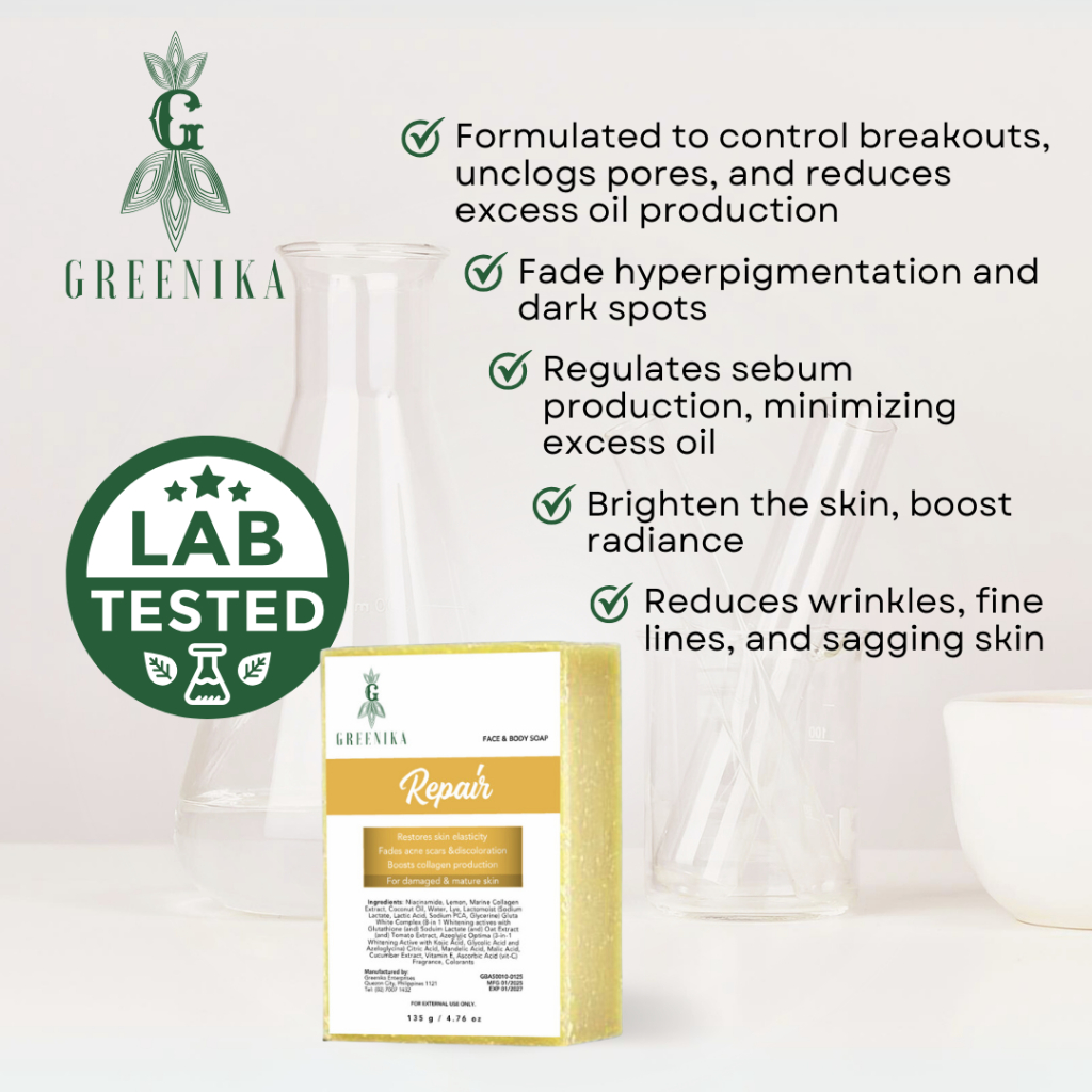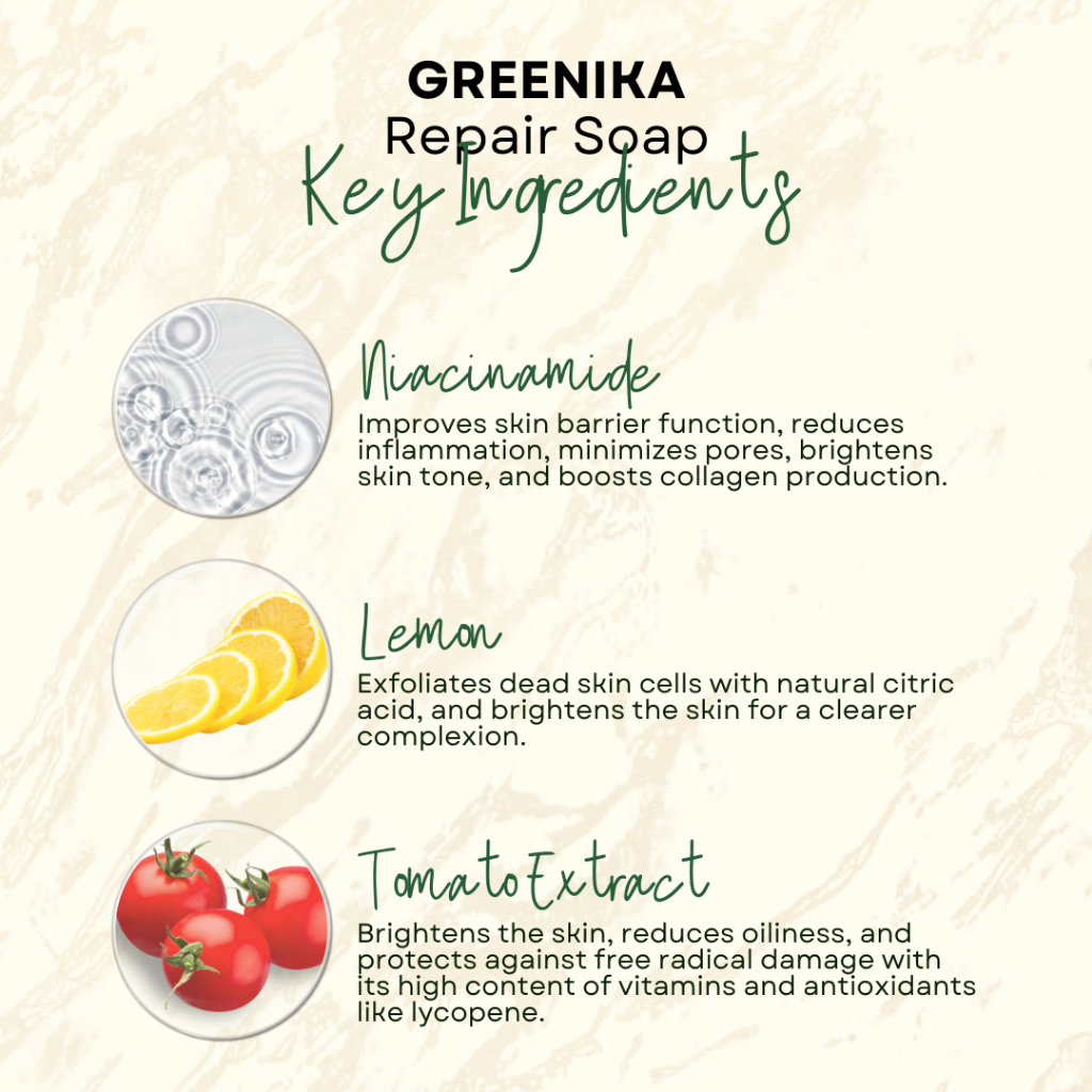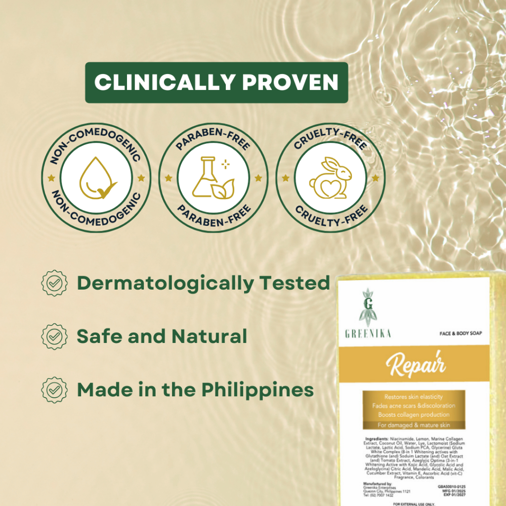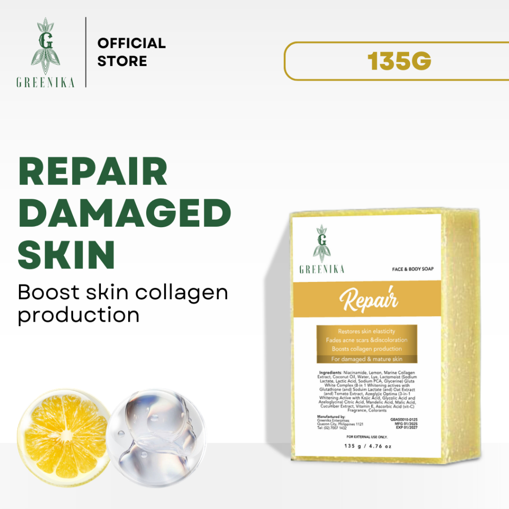 [ FOR ACNE-PRONE & ACNE MARKS ] Greenika Repair Soap Skin Brightening & Anti Wrinkle with Collagen