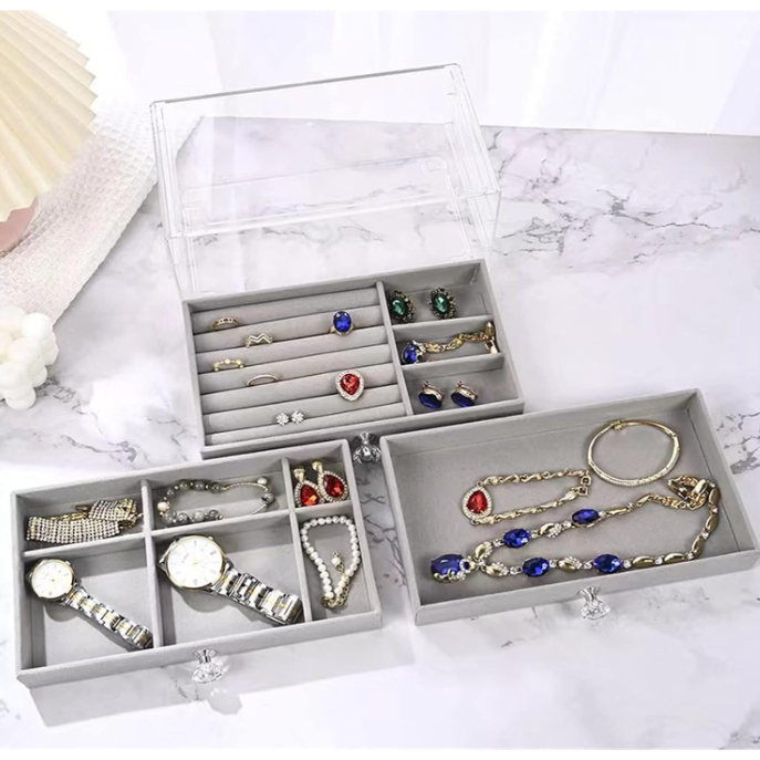Dust-proof triple drawer jewelry storage box acrylic jewelry box with crystal handle