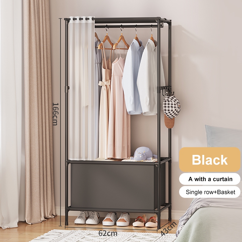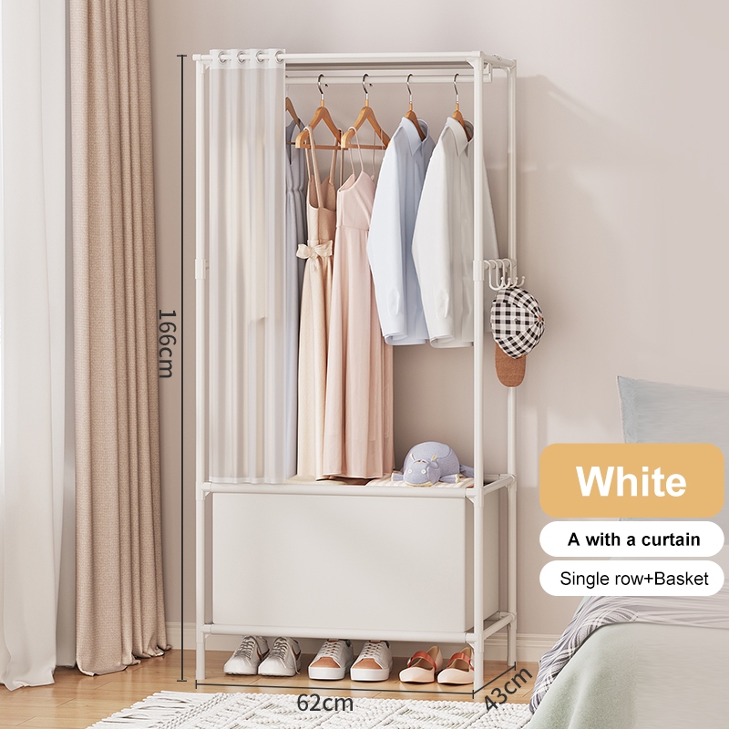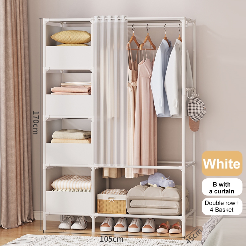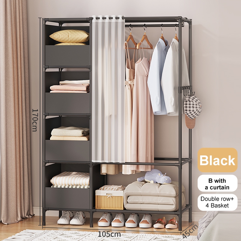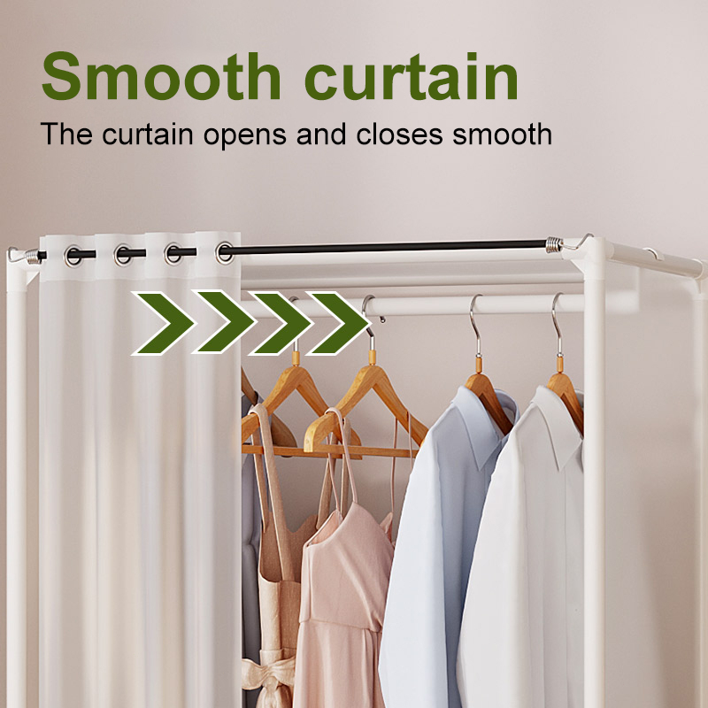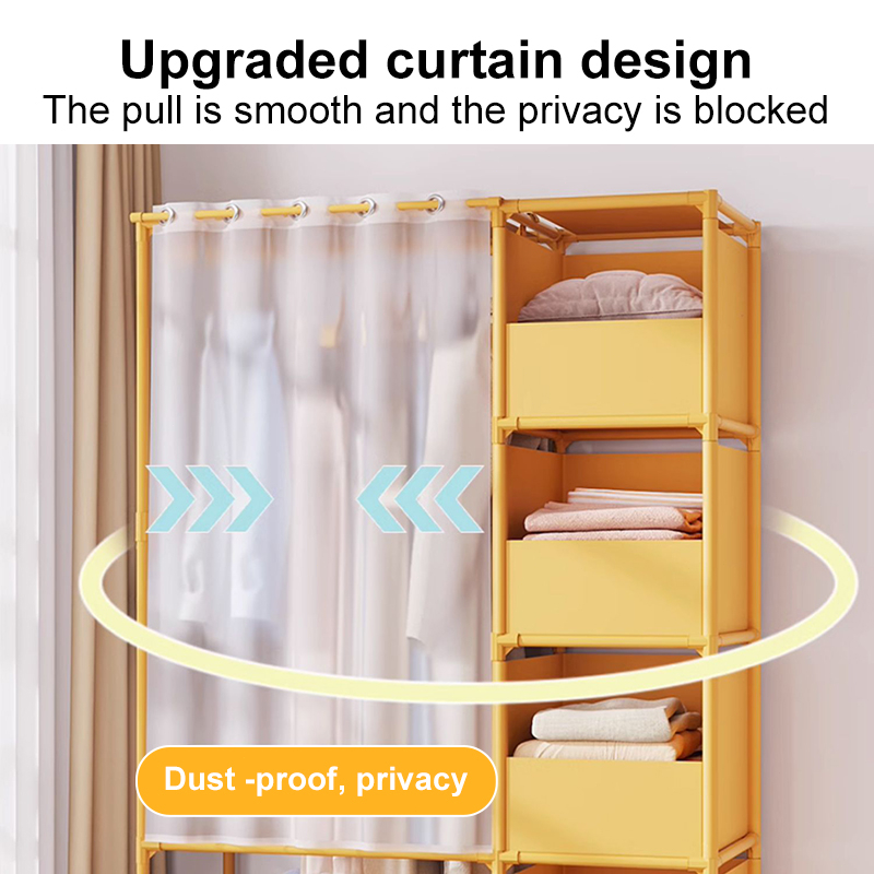 Dustproof Wardrobe Cabinet Clothes Organizer Rack with Curtain Bedroom Cabinet with Clothes Cover