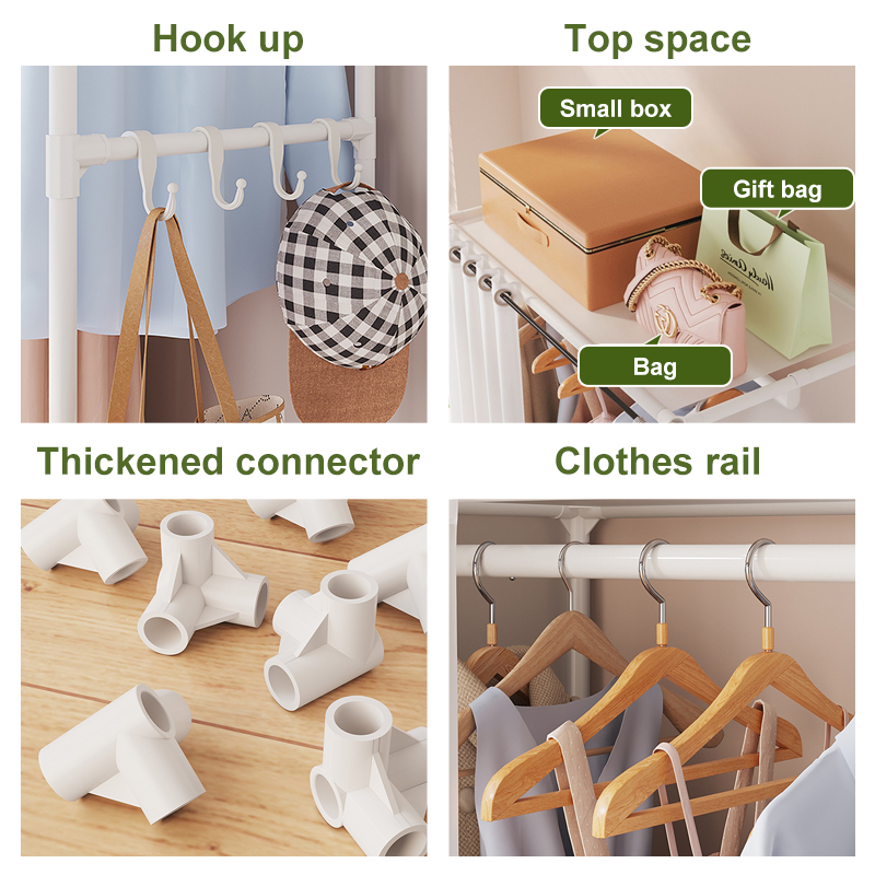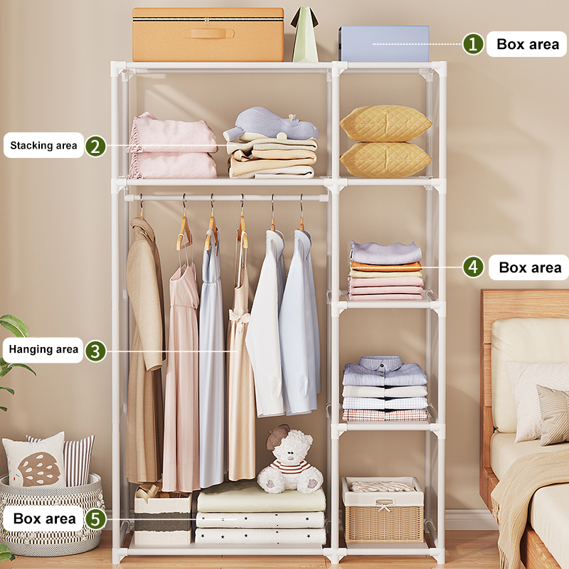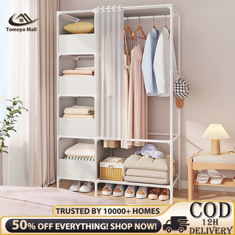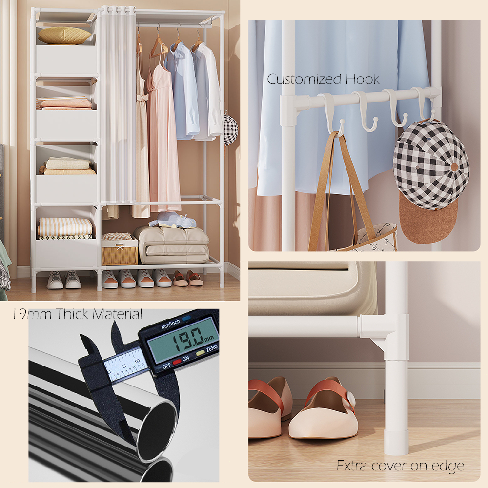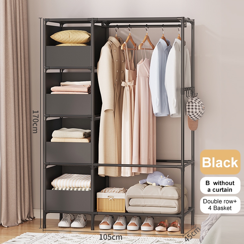 Dustproof Wardrobe Cabinet Clothes Organizer Rack with Curtain Bedroom Cabinet with Clothes Cover