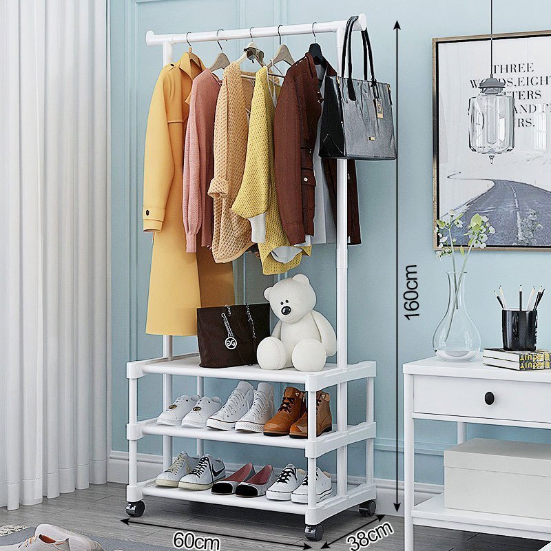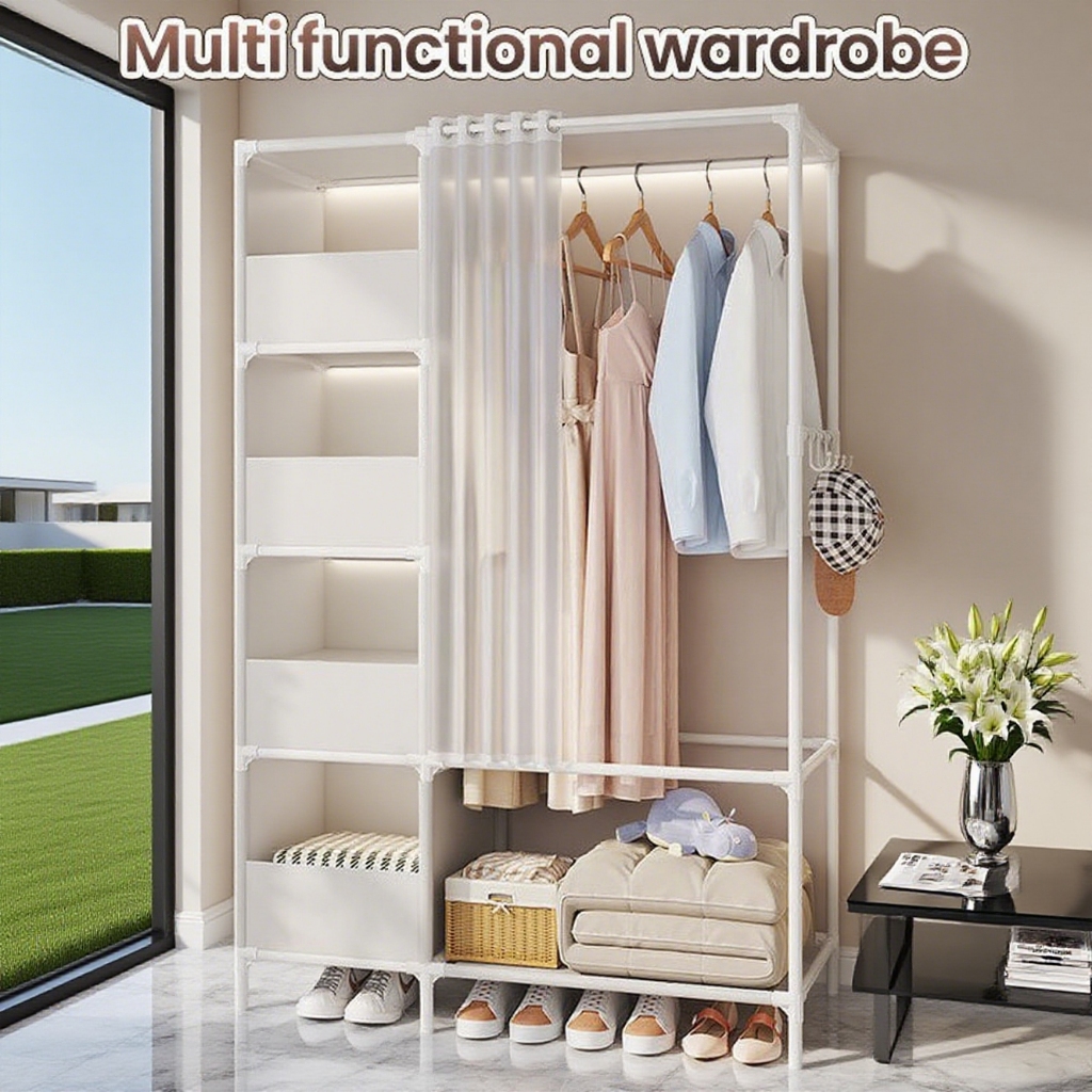 Dustproof Wardrobe Cabinet Clothes Rack Curtain Multifunction Organizer Integrated Coat Storage Rack