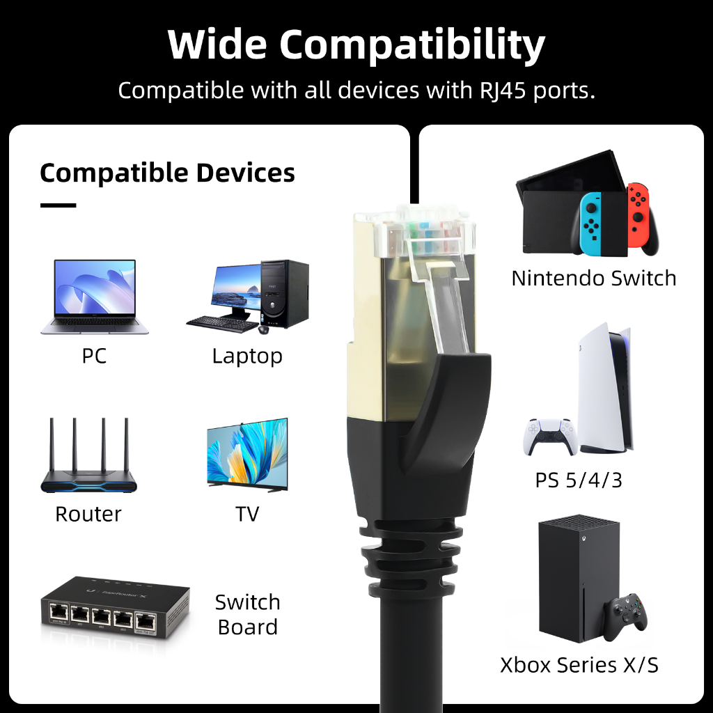 Dutevolns Cat8 SSTP Ethernet Patch Cable 40Gbps 2000MHz Super Speed RJ45 Cat8 Network Cable CAT 8 Lan Cable For Router Laptop Tvbox
