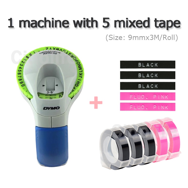 Dymo 12965 Labeling Machine with 5pcs dymo 1610 1540 motex c101 9mm 3D Embossing Tapes for Dymo Label printer typewriter