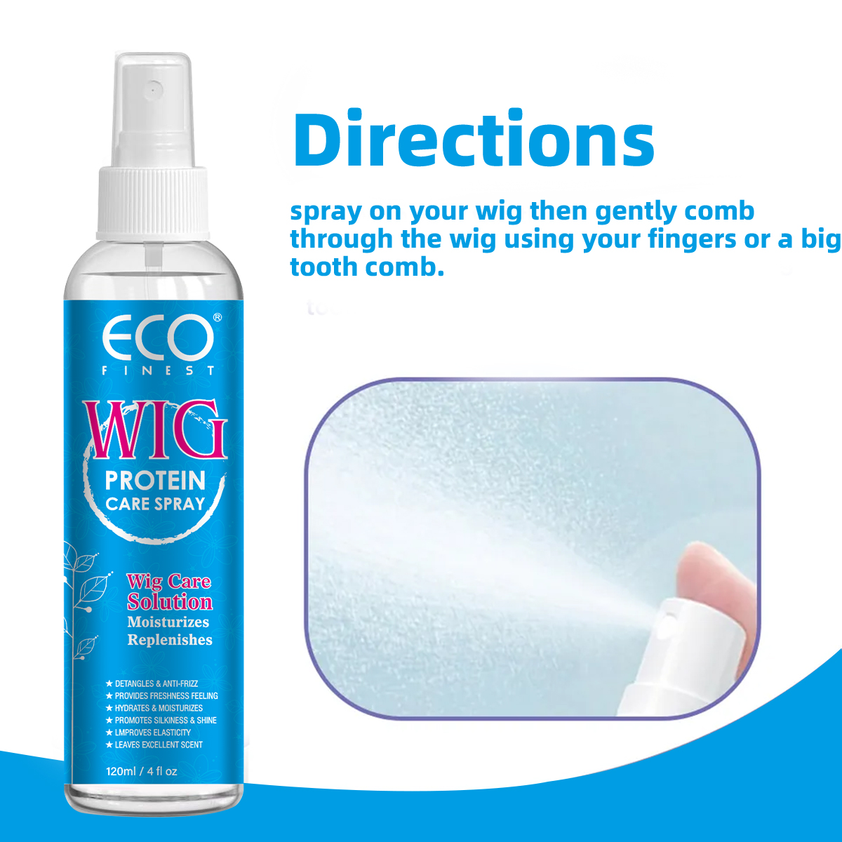Synthetic Wig Protein Care Spray, nourishes and prolongs the lifespan of wigs, infused with coconut oil, hydrating and moisturizing, adds body and volume, detangles and fights frizz.