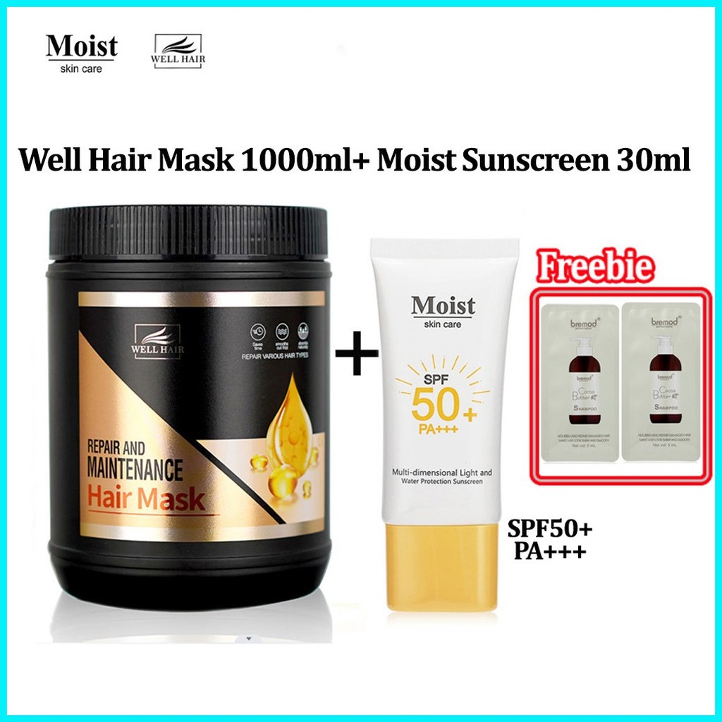 Well Hair Mask 1KG & Moist Skin Care SPF 50 PA+++ Sunscreen Care Treatment Repair Dry Frizzy Hair