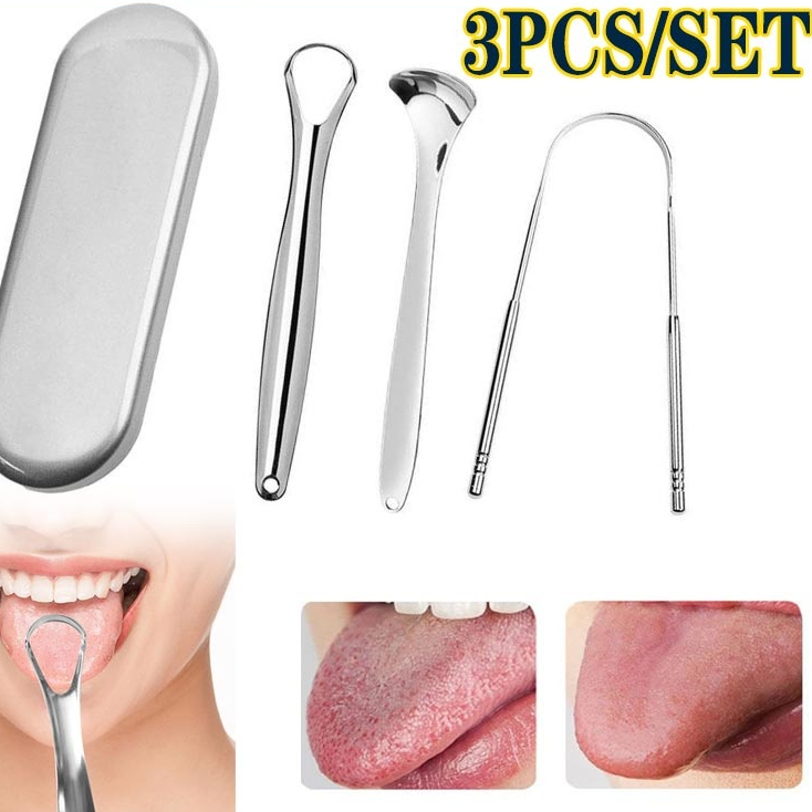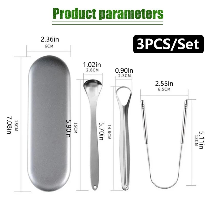 3 Pcs/set Steel Tongue Scraper Metal Brush Dental Kit Tongue Cleaner With Handy Case