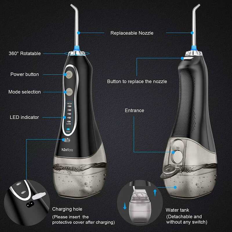 H2ofloss Cordless Dental Teeth Irrigator Portable Rechargeable IPX7 Waterproof Water Flosser for