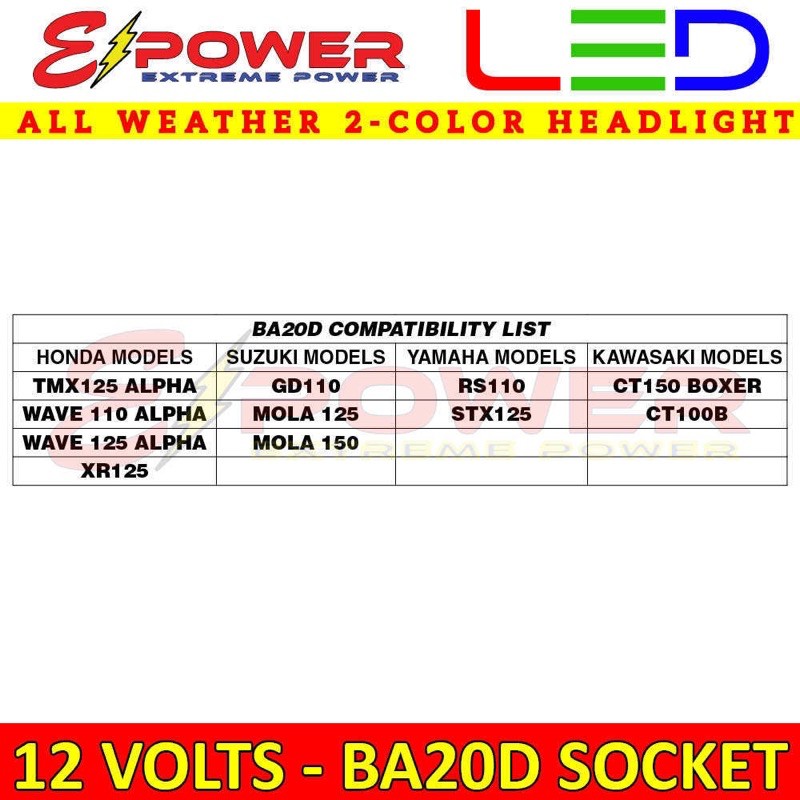 E-POWER BA20D 12V LED Headlight Bulb for TMX 125 Alpha, Wave110 Alpha
