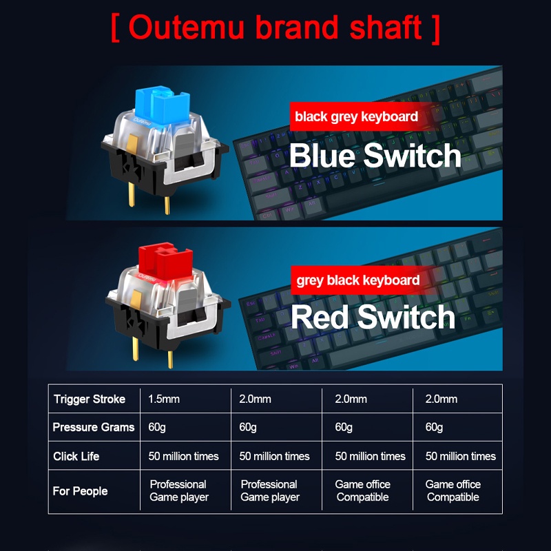 E-YOOSO Z11 RGB USB 60% Mini Mechanical Gaming Keyboard Blue Red Switch 61 Keys