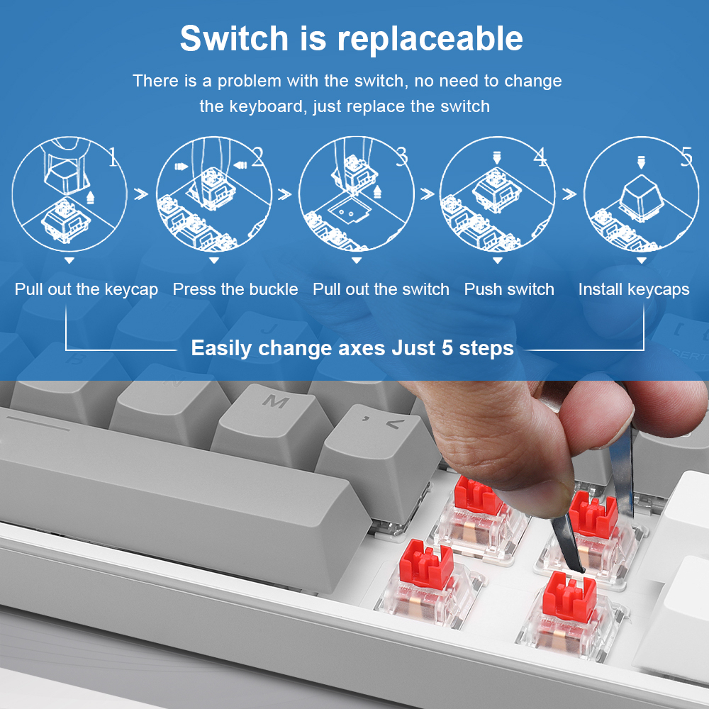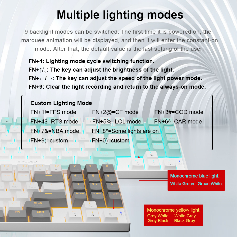 E-YOOSO Z13 USB Mechanical Gaming Keyboard Blue Red Switch 89 Keys Wired detachable cable Gamer for Computer pc