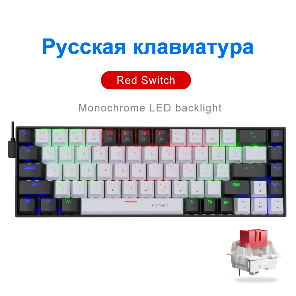 E-YOOSO Z686 USB 60% Mini Mechanical Gaming Keyboard Blue Red Switch 68 Keys Wired detachable cable for computer PC