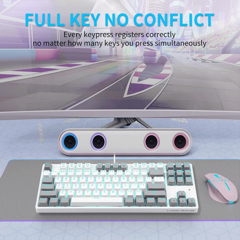 E-Yooso Z-87 87 Keys Single Light Mechanical Gaming Keyboard [White/Grey] [Red Switch]