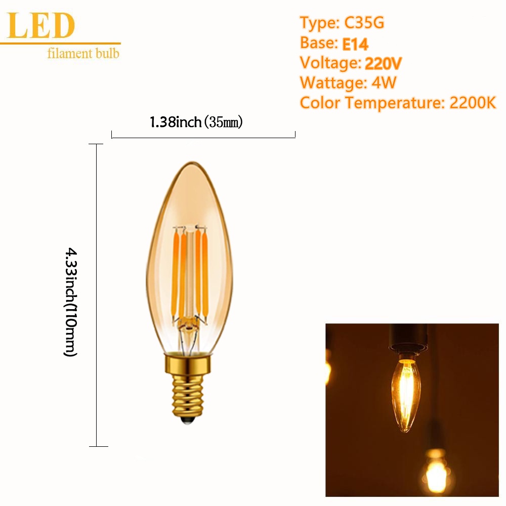 E14 E27 Dimmable Retro LED Filament Light Bulb 4W Warm White 2200K 220V C35 C7 T20 T22 T28 ST45 T25 G40 Vintage Edison Lamp