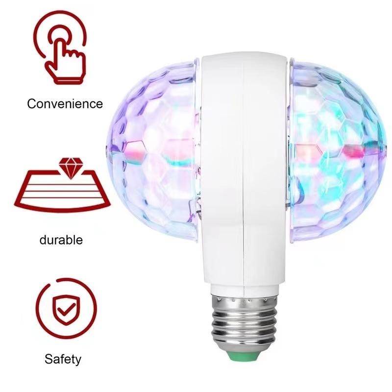 E27 Double-Headed Rgb Led Rotating Light Christmas Lights Bulb Small Strobe Light Disco