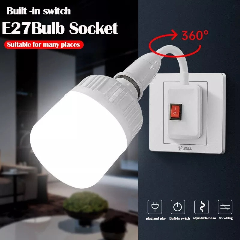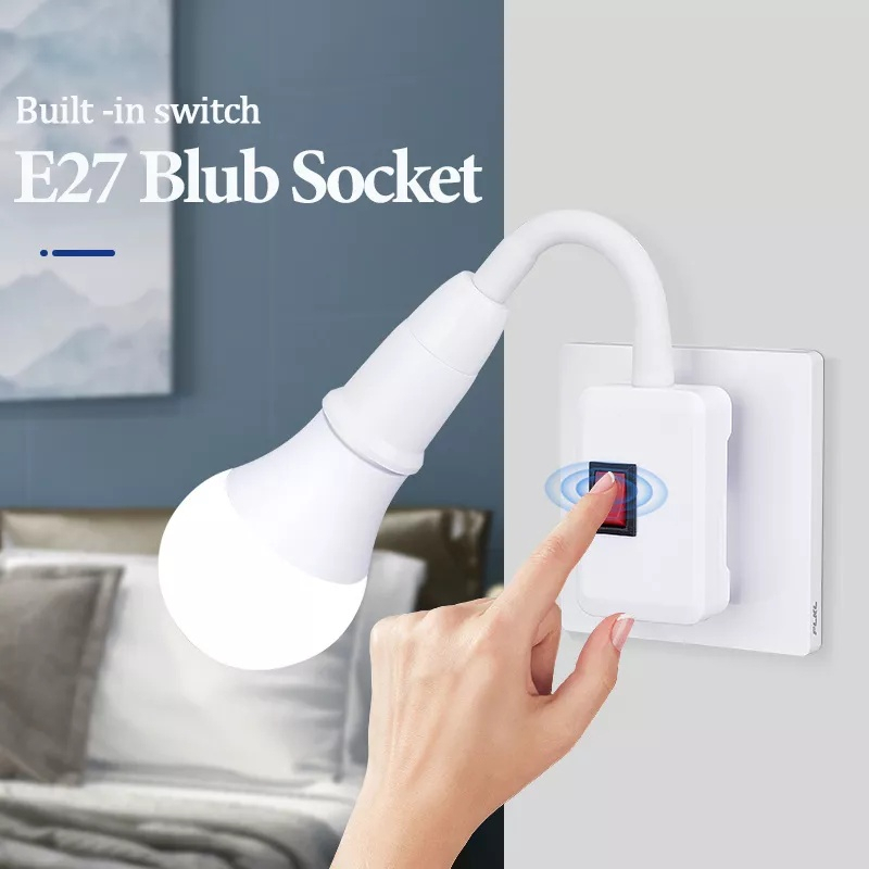 E27 Lamp Bulb Extension Holder Night Light With Switch Plug-in Flexible Wall Light Socket Adapter