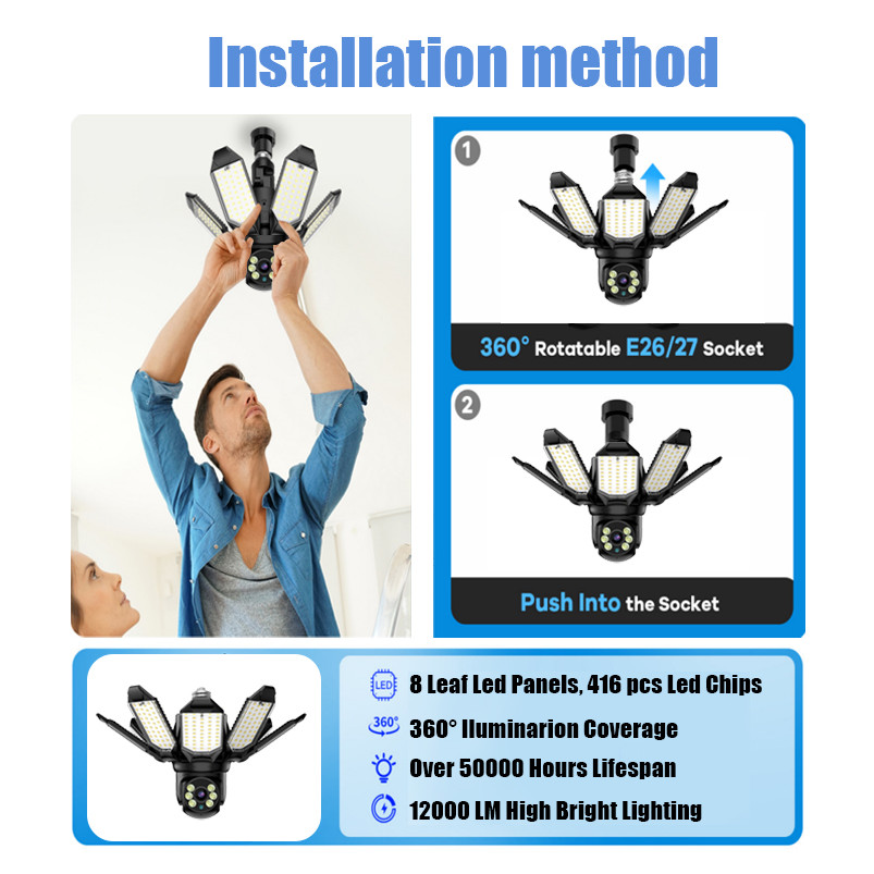 E27 V380 CCTV Camera Upgraded Version Noise Reduction 8 White Light LEDs + 6 LEDs Two-Way Audio