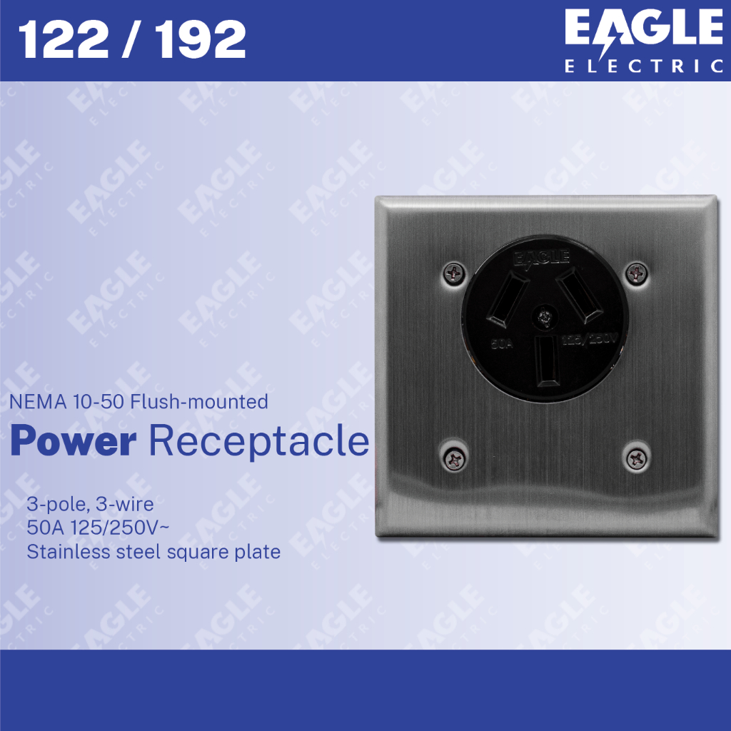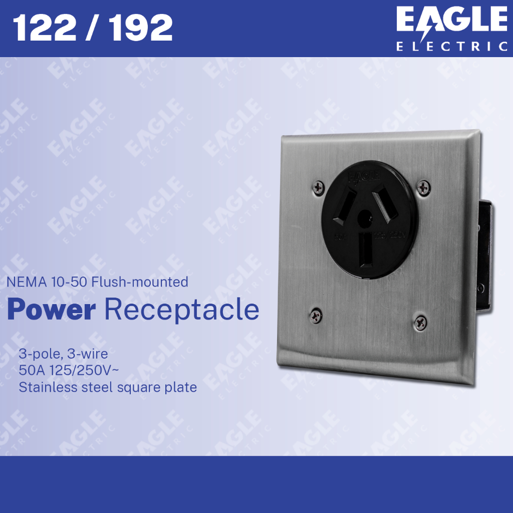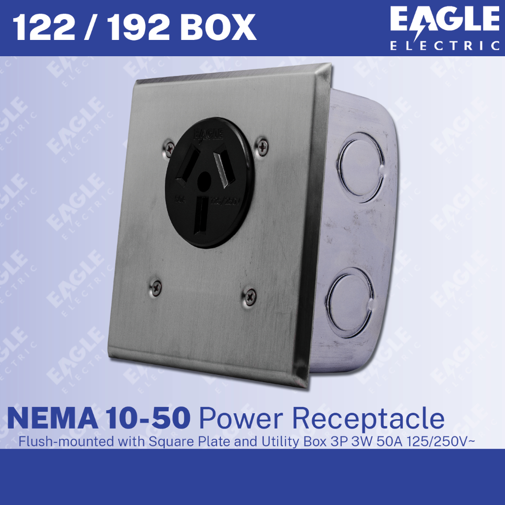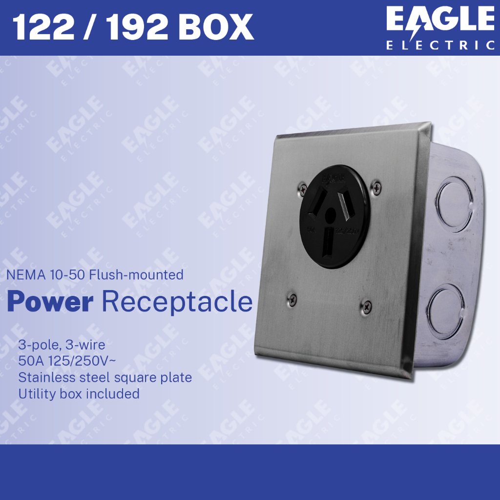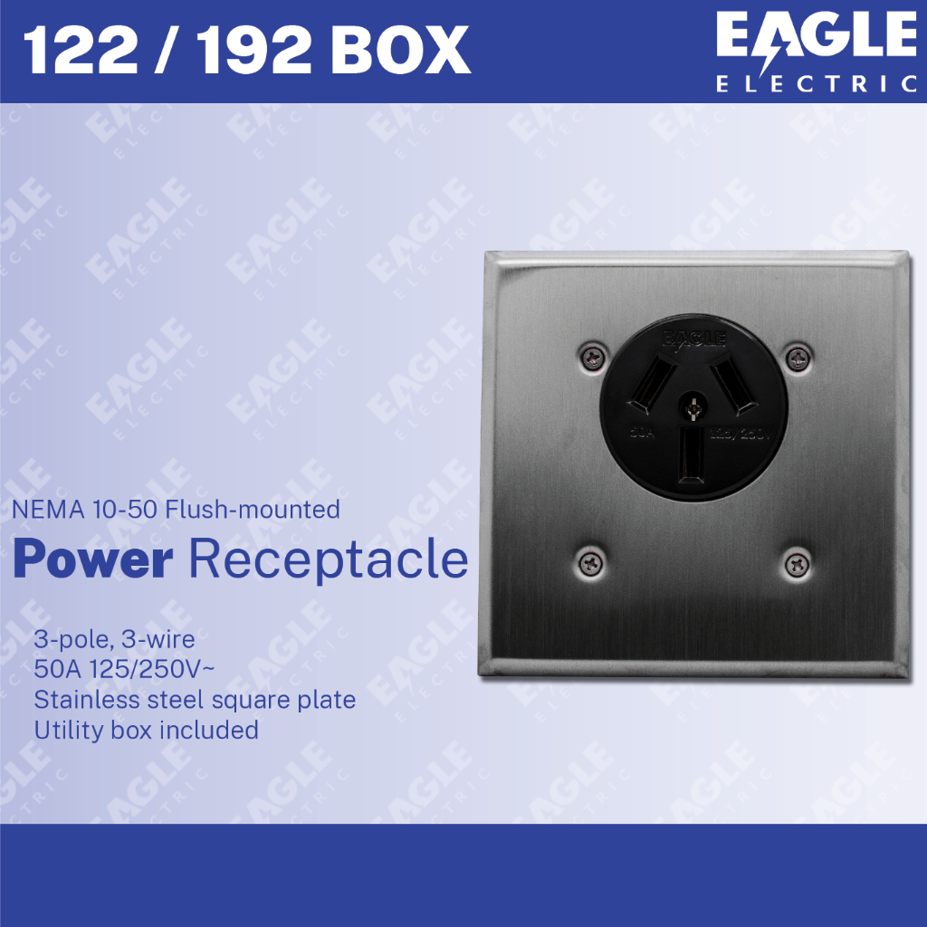 EAGLE 122/192 BOX NEMA 10-50 Flush-mounted Power Receptacle 3P 3W 50A 125/250V~ EEPH Outlet Saksakan