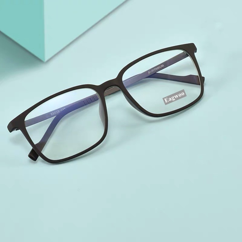 EAGWOO Beta Titanium Eyeglasses Men Full Rim Optical Frame Prescription Spectacle Square Myopia Eye Glasses Simple Design Light