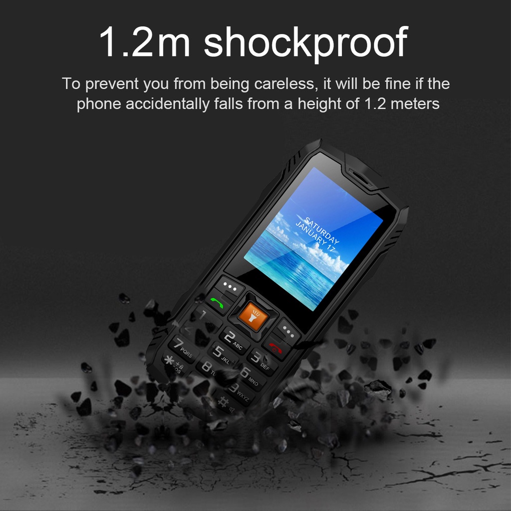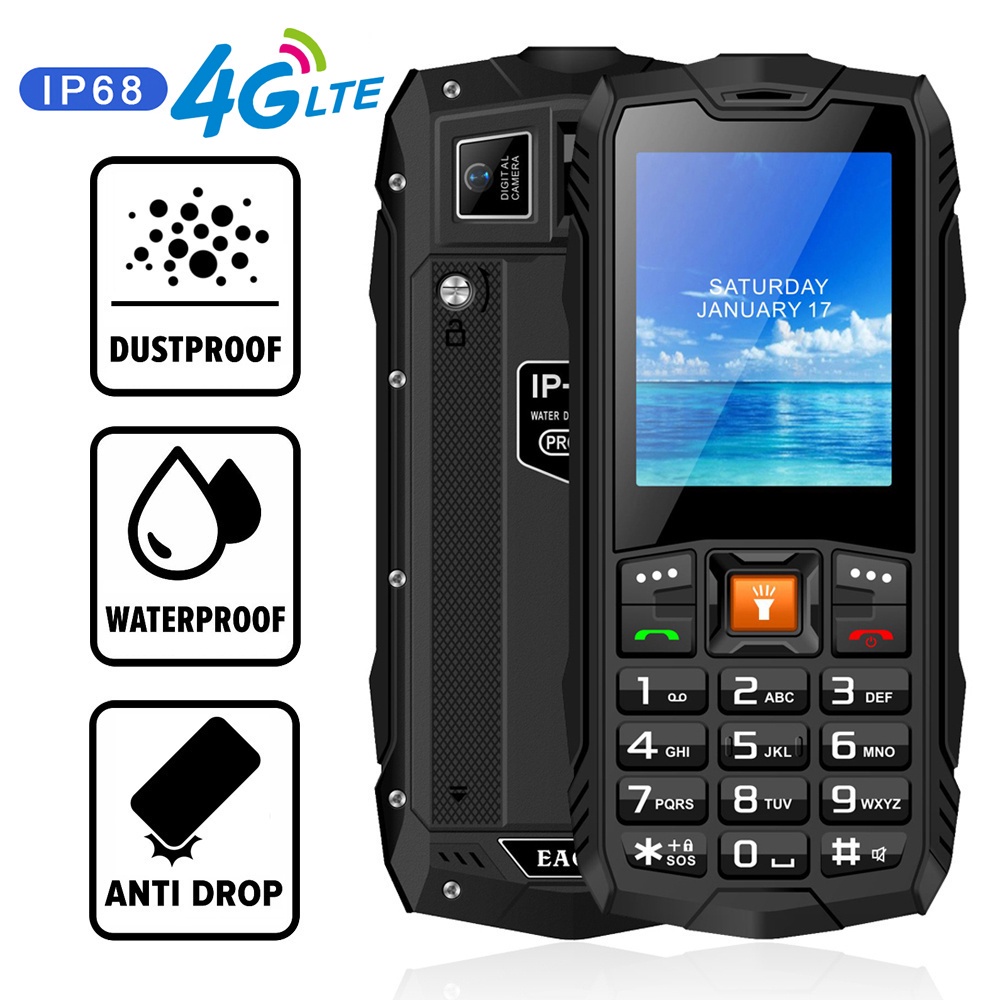 EAOR 4G LTE Rugged Phone IP68 Waterproof Mobile Phone 2800mAh Big Battery Dual SIM Outdoor Feature Phone Keypad Phone with Glare Flashlight
