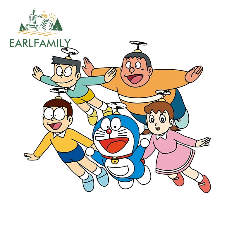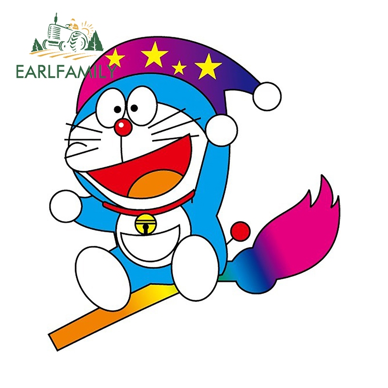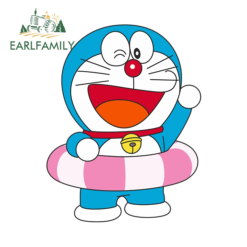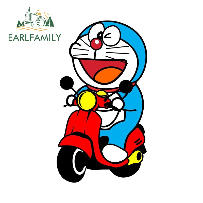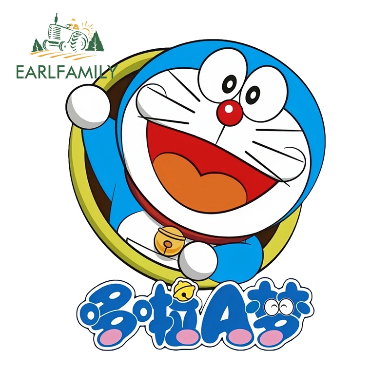 EARLFAMILY 13cm Doraemon Anime Car Sticker Waterproof Motorcycle Bumper Laptop Vinyl Sunscreen Decal Suitable for Any Flat and Smooth Clean Surface