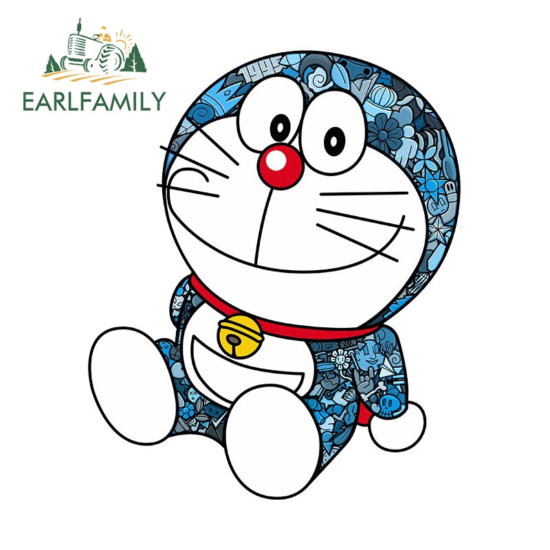 EARLFAMILY 13cm Doraemon Car Sticker Fashion Waterproof Motorcycle Trunk Bumper Helmet JDM Vinyl Decal Personality Sunscreen Car Door Protector