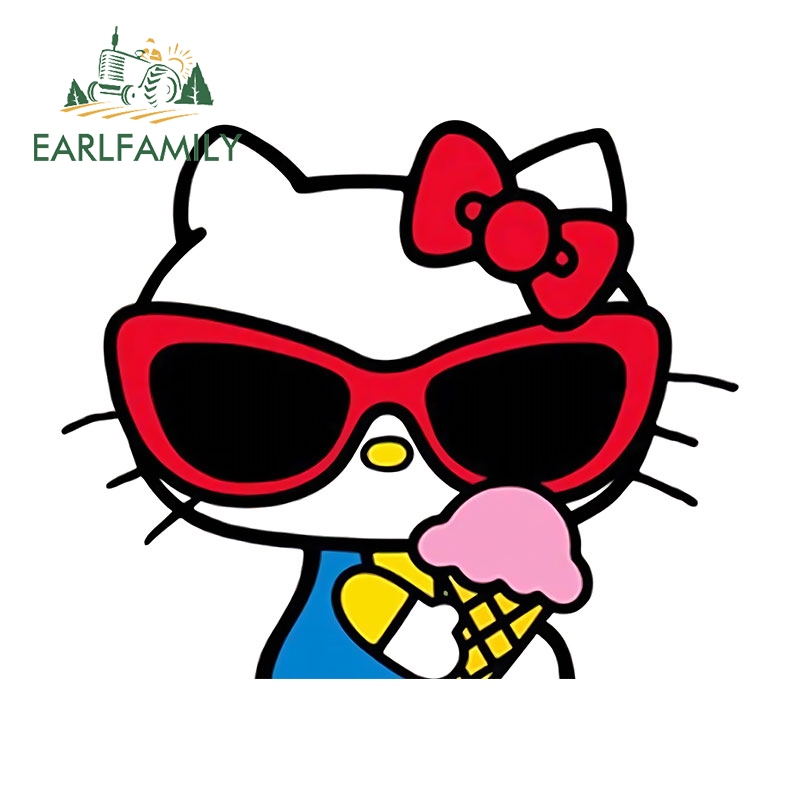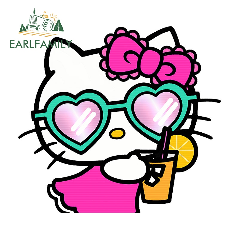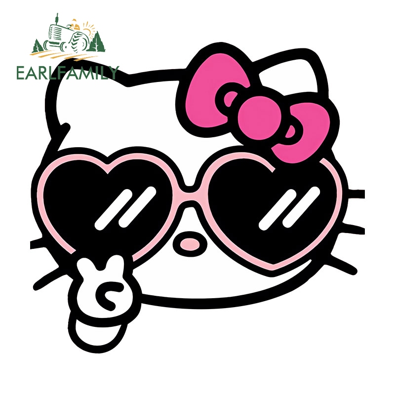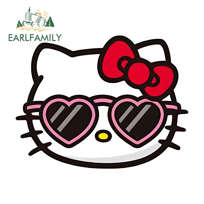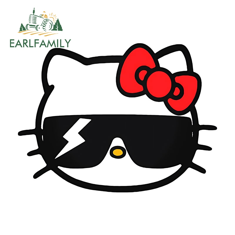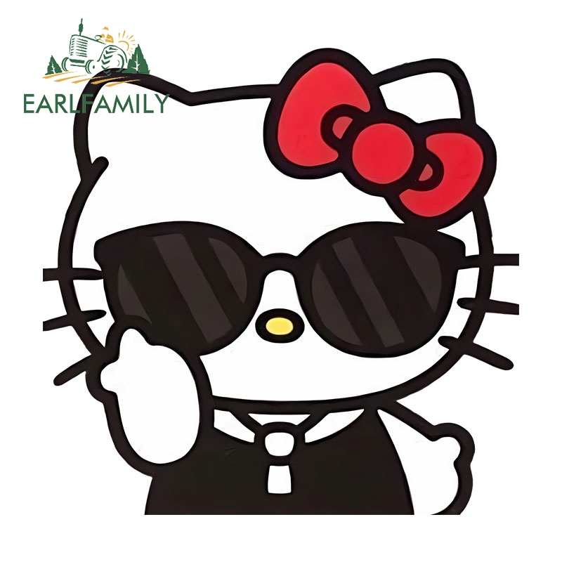EARLFAMILY 13cm Hello Kitty with Sunglasses Cartoon Car Sticker JDM Motorcycle Vinyl Waterproof Decal Suitable for Any Flat and Smooth Clean Surface
