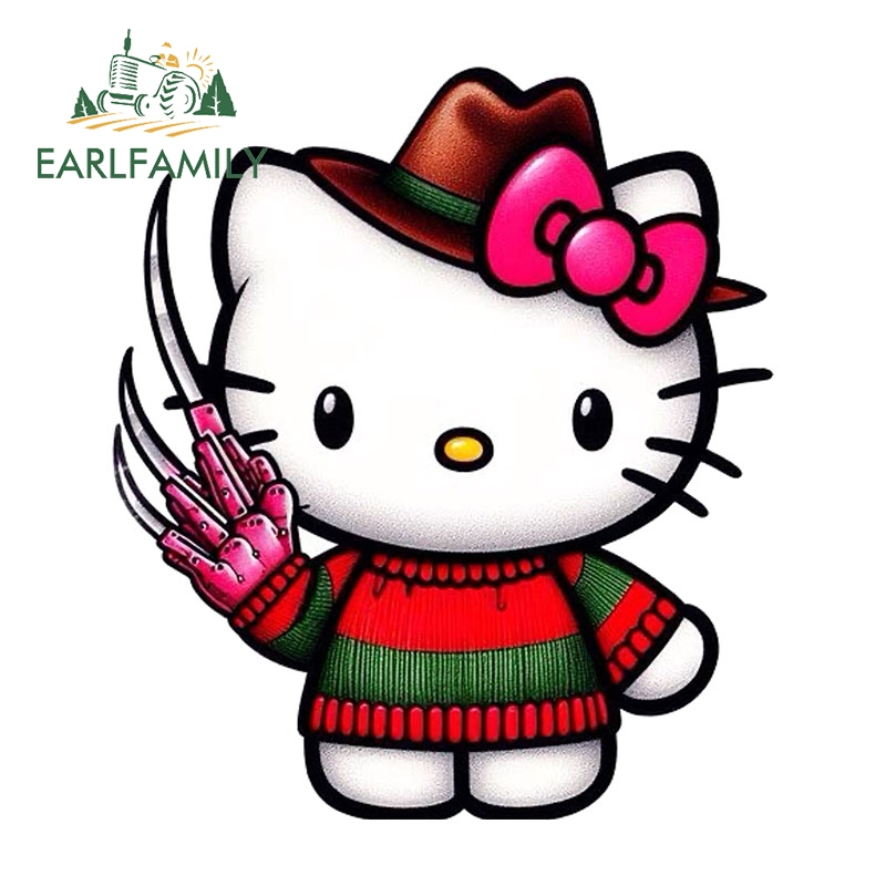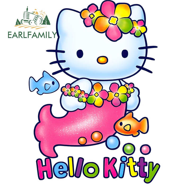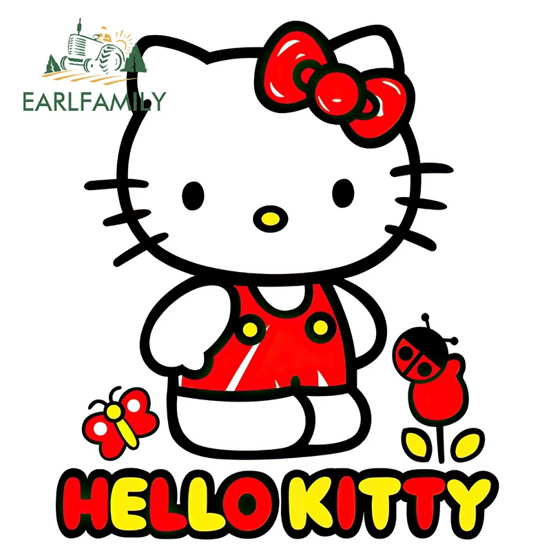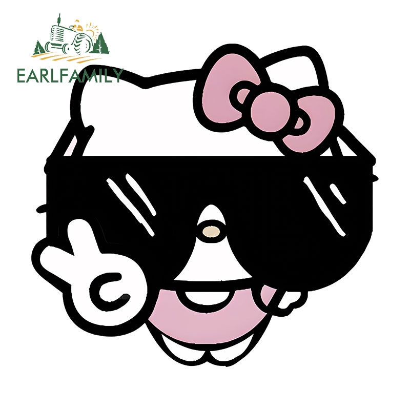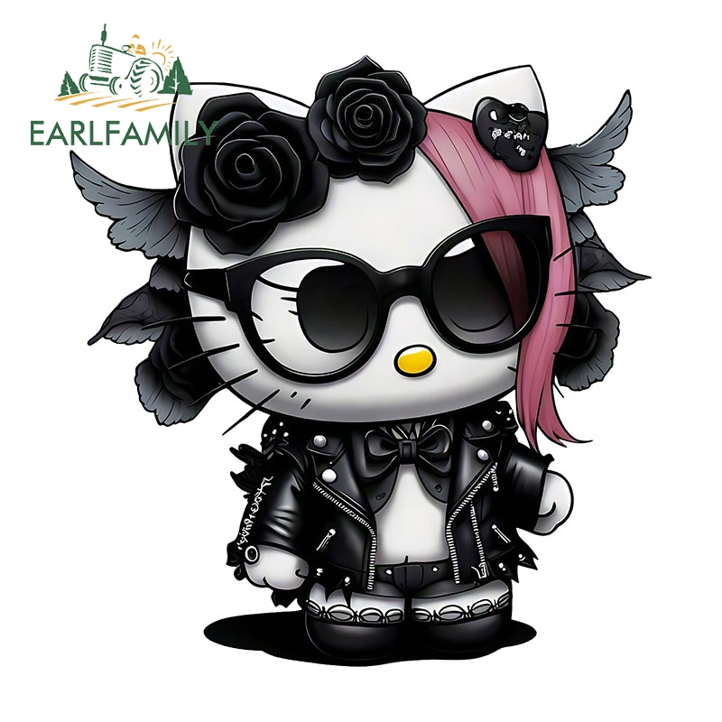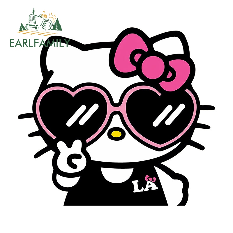 EARLFAMILY 13cm Hello Kitty with Sunglasses Cartoon Car Sticker JDM Motorcycle Vinyl Waterproof Decal Suitable for Any Flat and Smooth Clean Surface