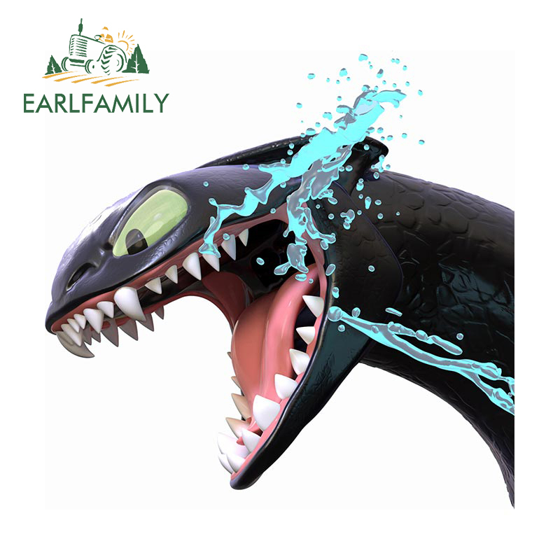 EARLFAMILY 13cm Toothless Monster Car Sticker Personality Refrigerator Rear Windshield Vinyl Waterproof Decal Motorcycle Fashionable Decoration