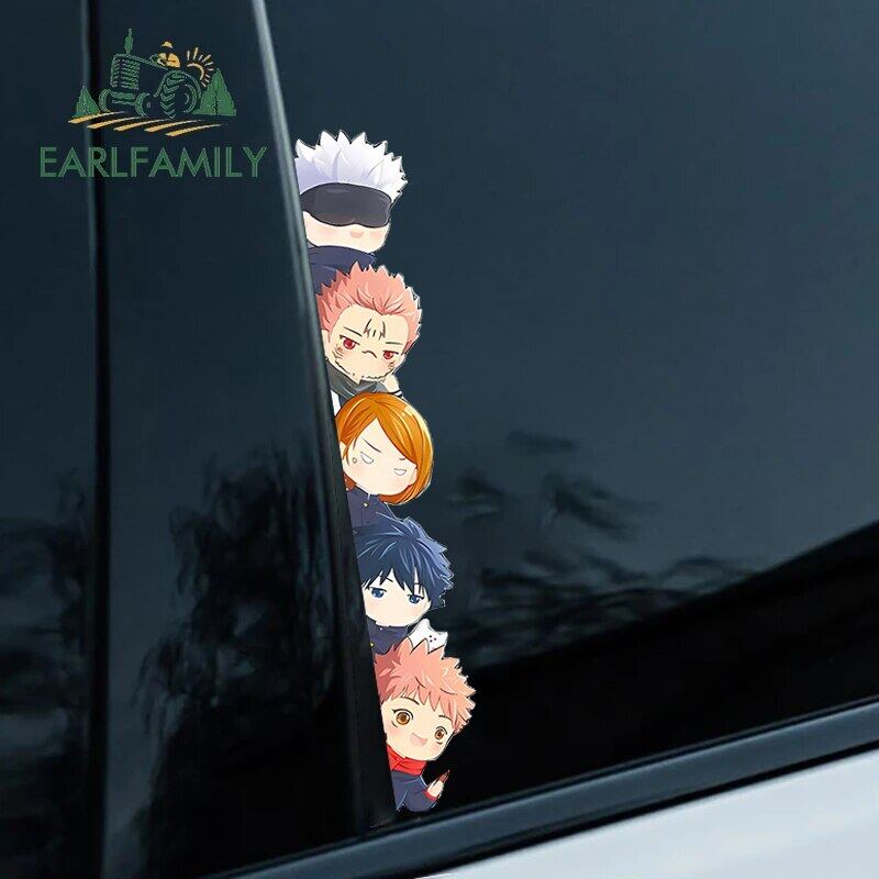 EARLFAMILY 13cm x 2.09cm Jujutsu Kaisen Chibi Peeker Car Stickers Windows Graffiti Anime Decal Laptop Car Accessories