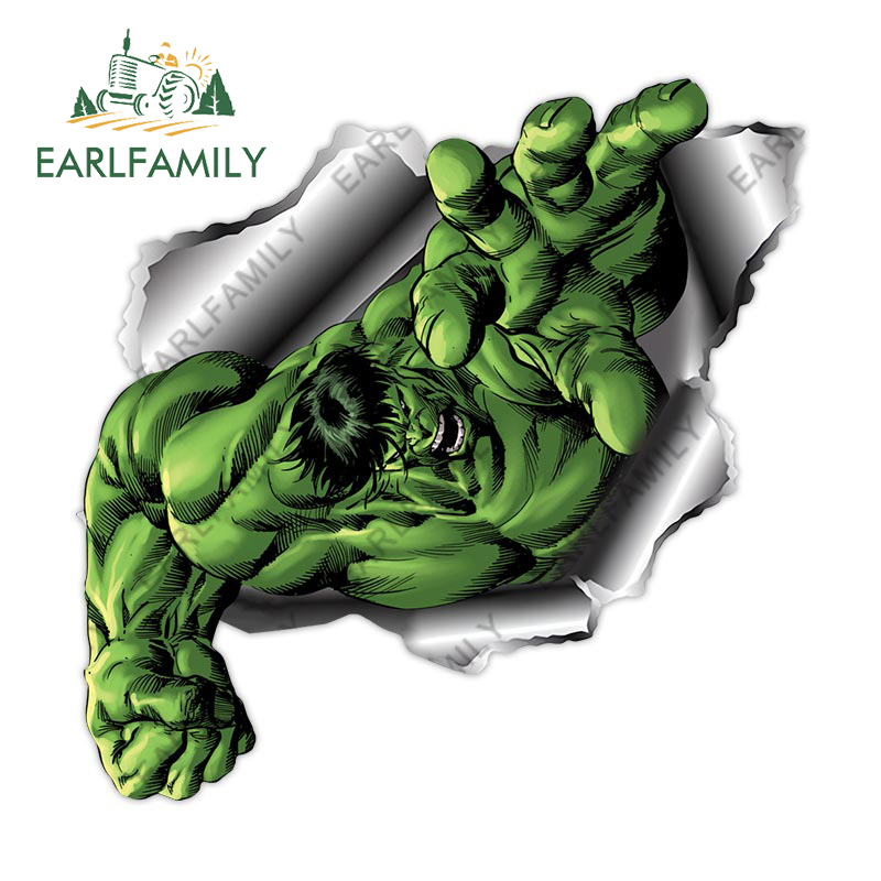 EARLFAMILY 13cm 3D Hulk Anime Car Sticker Torn Metal Decal Waterproof Bumper Motorcycle Helmet Vinyl Decals Fashionable Car Door Protector