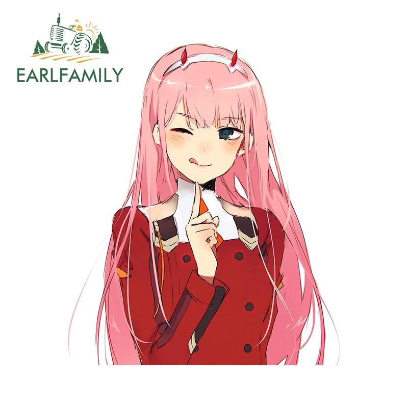 EARLFAMILY 43cm x 36.7cm For Zero Two Car Stickers Waterproof Decal Funny Campervan Anime Sticker Sunscreen Scratch-Proof