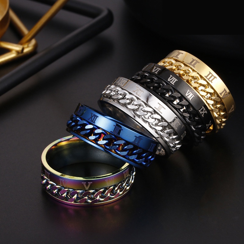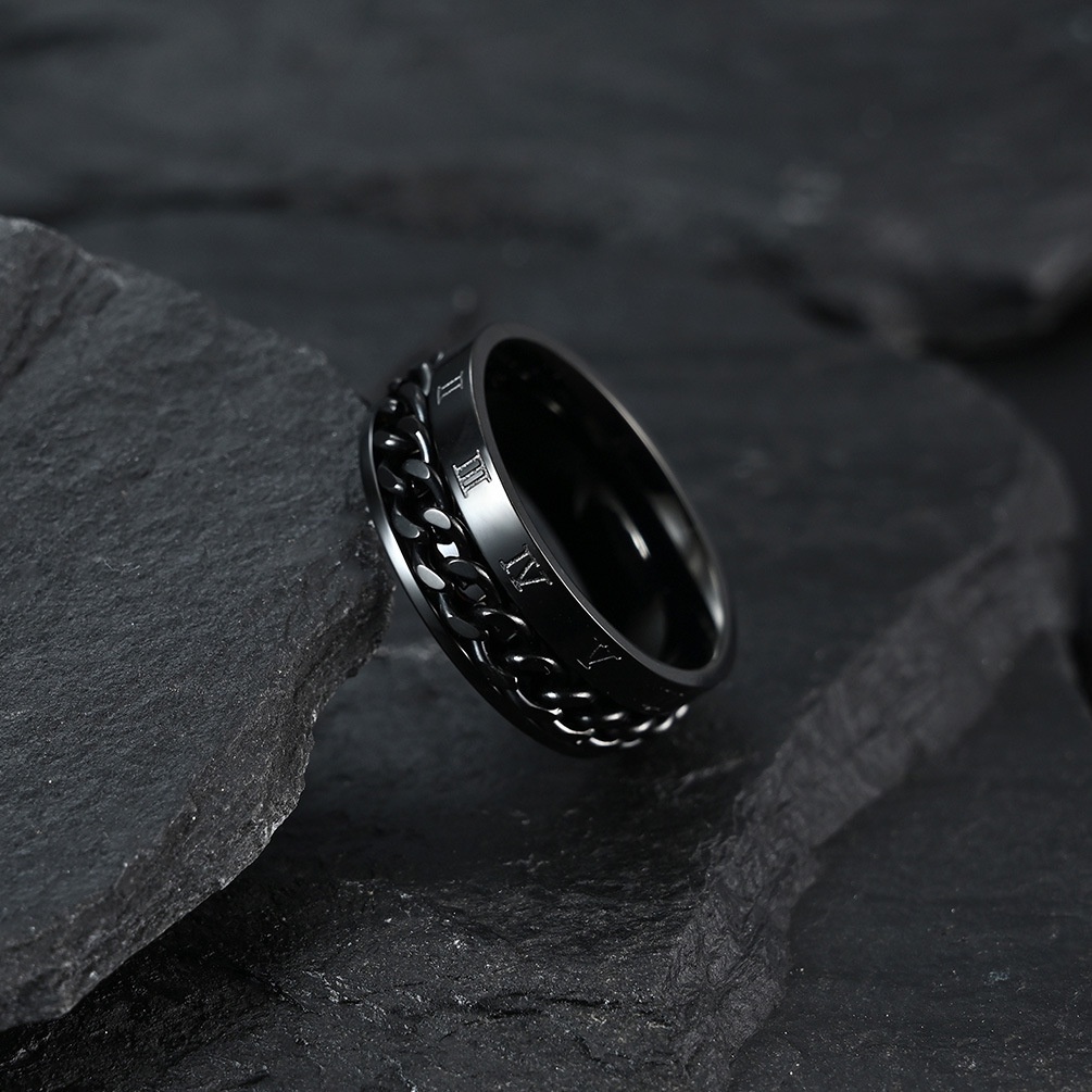 EASY ZHOU Titanium steel Anxiety Spinner Spinning rings Rotatable Chain Couple Fidget Ring Steel Roman Numeral Multifunctional Chain Men's Corkscrew Gift KAR112