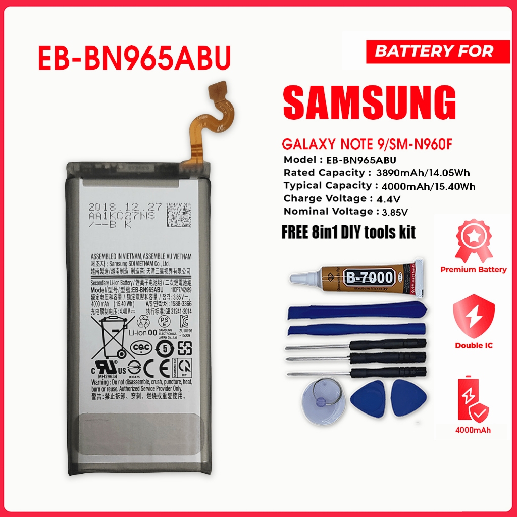 SAMSUNG GALAXY NOTE 9 BATTERY MODEL EB-BN965ABU 4000MAH CAPACITY FREE 8IN1 TOOLS KIT