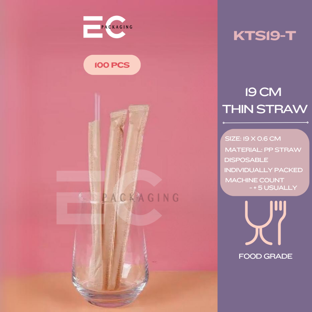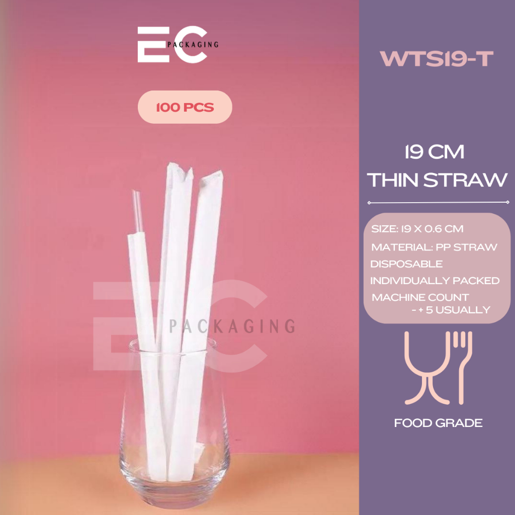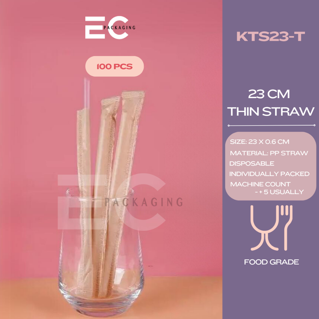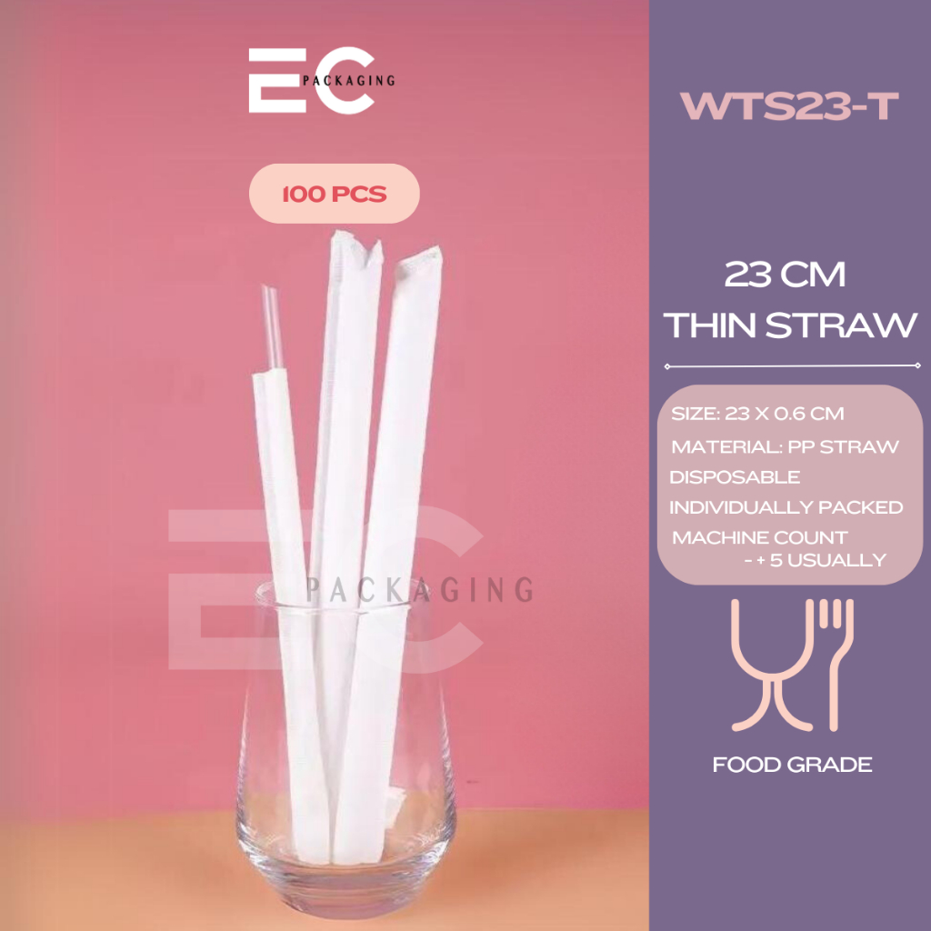 EC 100pcs INDIVIDUALLY WRAPPED FOODGRADE PP STRAW SLIM STRAW BOBA MILKTEA STRAW DISPOSABLE