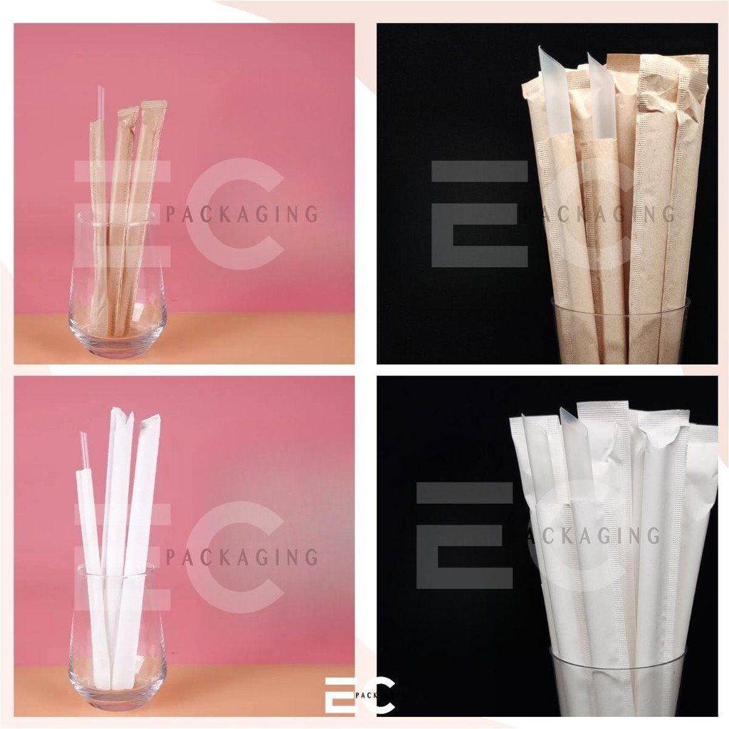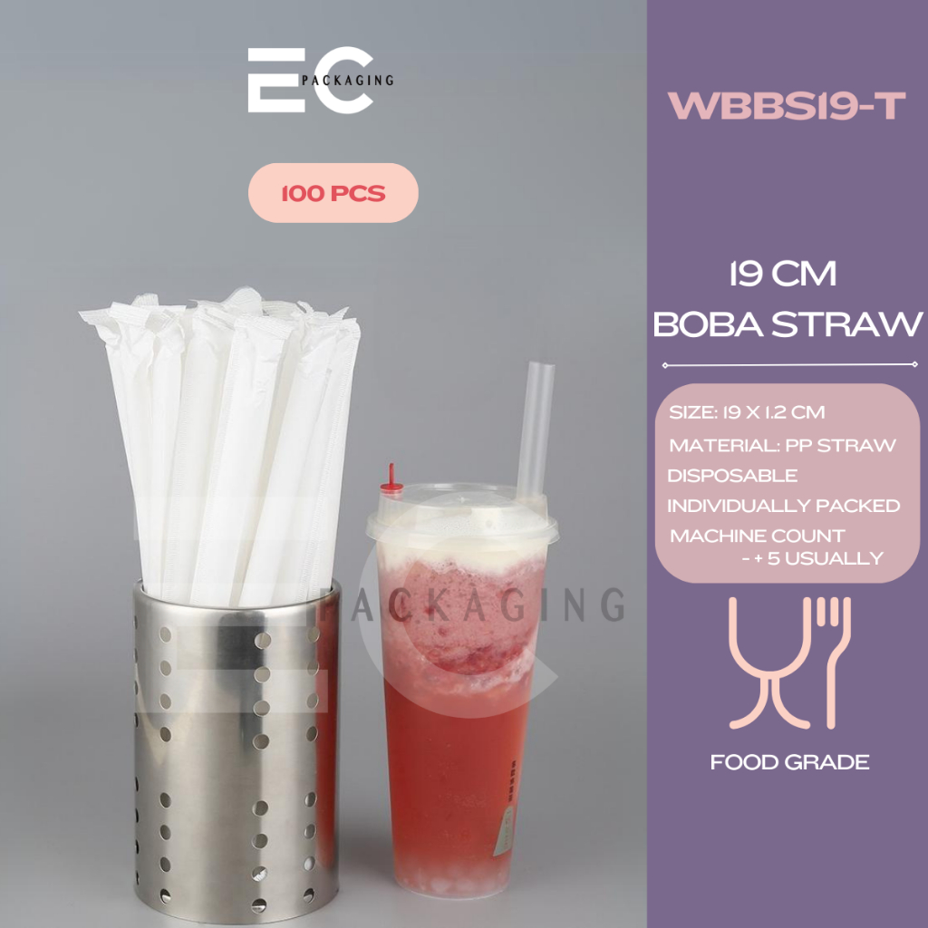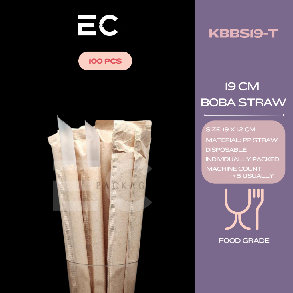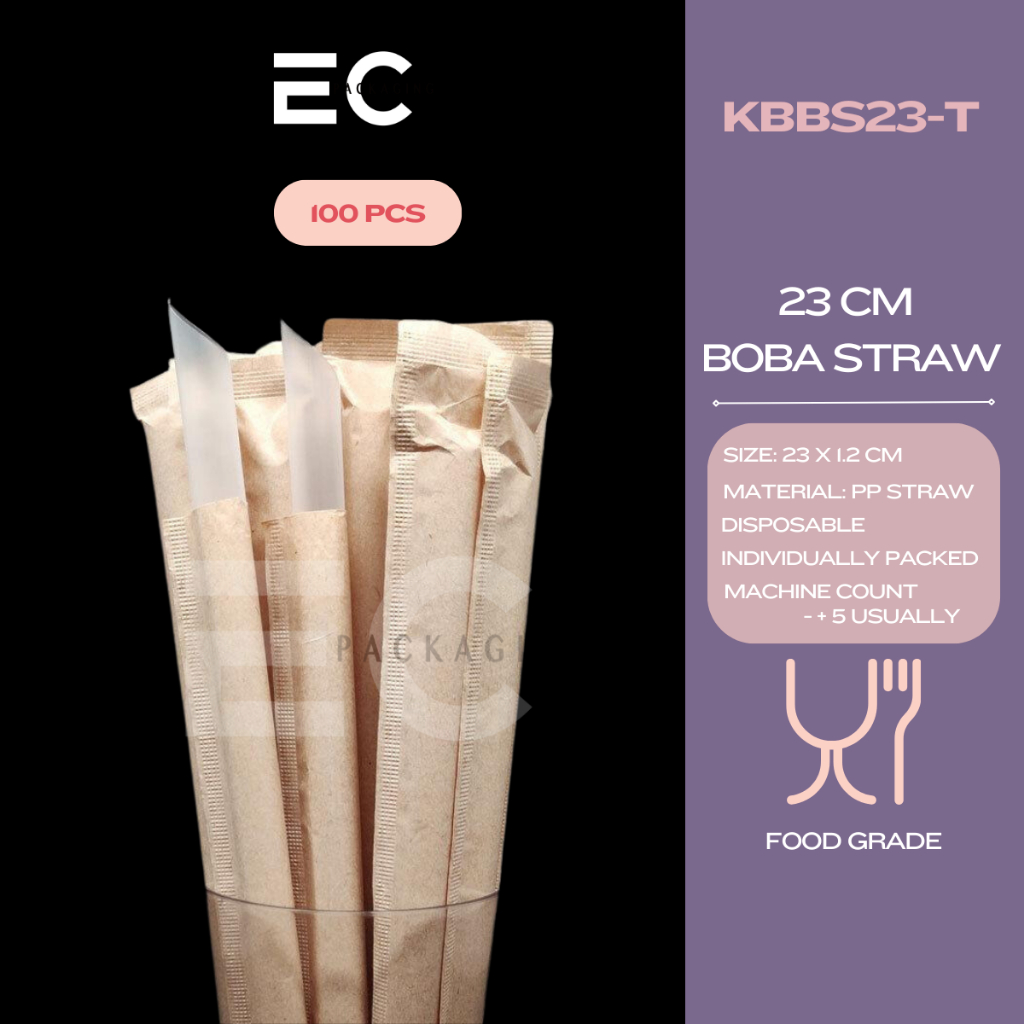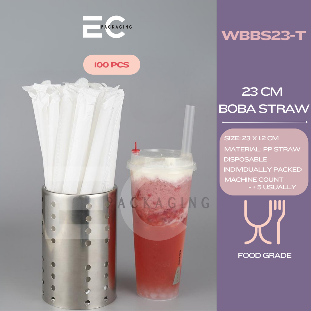 EC 100pcs INDIVIDUALLY WRAPPED FOODGRADE PP STRAW SLIM STRAW BOBA MILKTEA STRAW DISPOSABLE