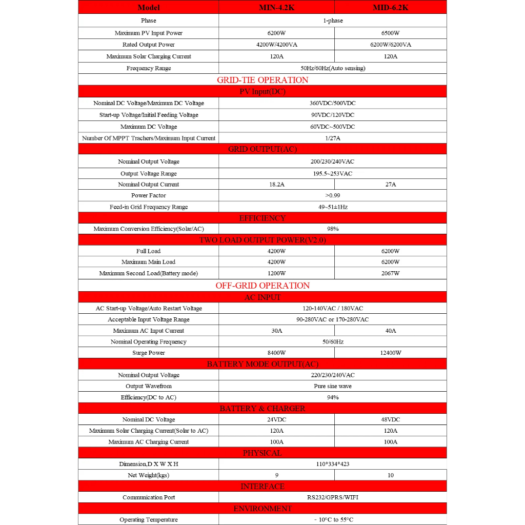 ECGSOLAX 4.2KW On-grid/Off-grid Hybrid Solar Inverter 24V VDC 230VAC 120A MPPT Work Without battery