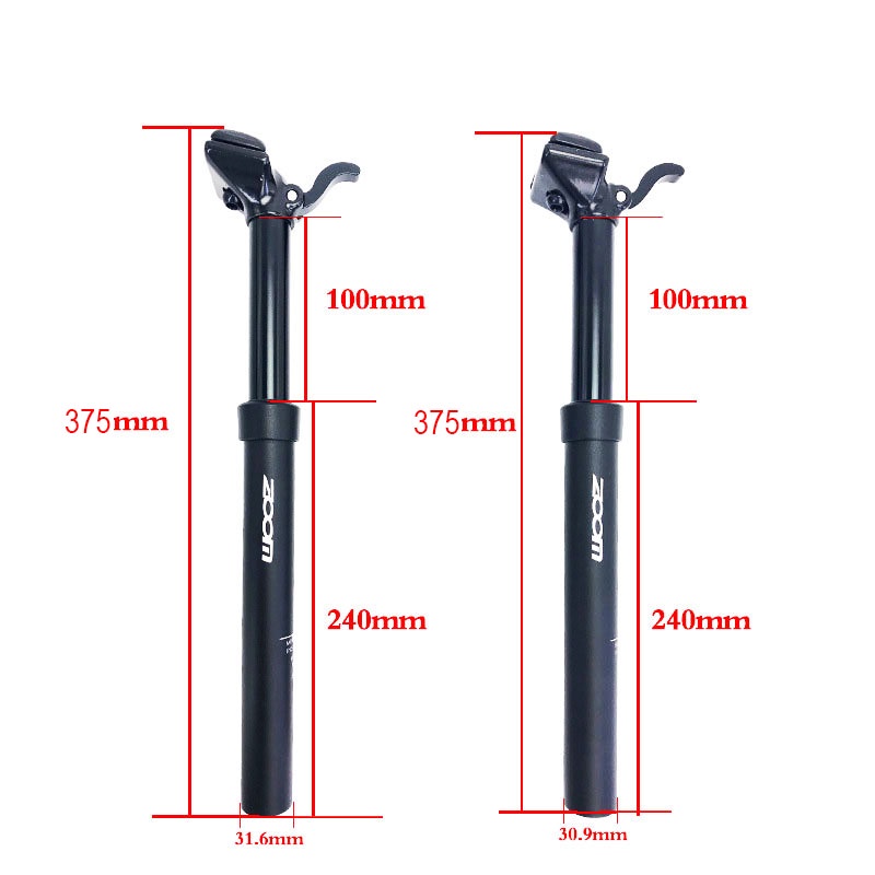 ECILY ZOOM Adjustable Dropper Seatpost Manual Control Lever wireless Hydraulic Bicycle seat post 100mm Travel 375mm 30.9 31.6 mm MTB