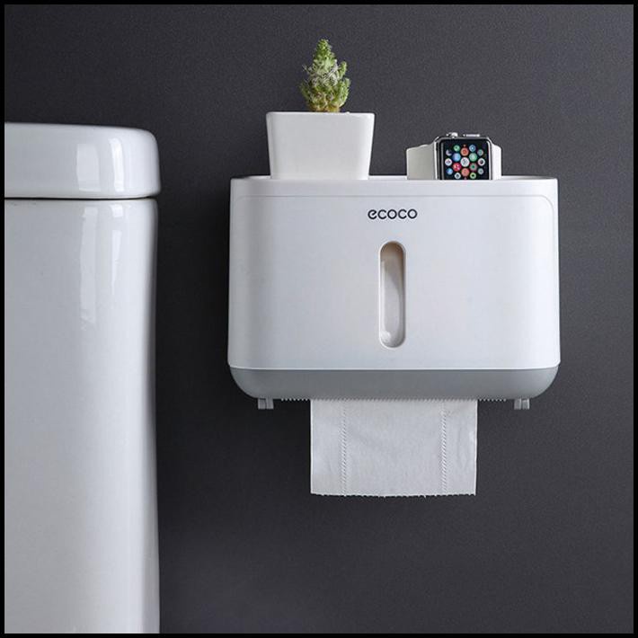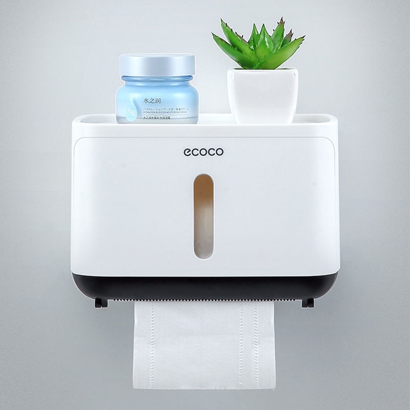 ECOCO Wall Mounted Bathroom Tissue Holder with Adhesive,Punch Free Roll Tissue Paper Holder Box