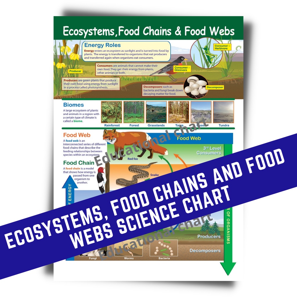 ECOSYSTEMS FOOD CHAINS & FOOD WEBS POSTERS CHARTS I ALL ABOUT SCIENCE CHARTS A4 Size Laminated