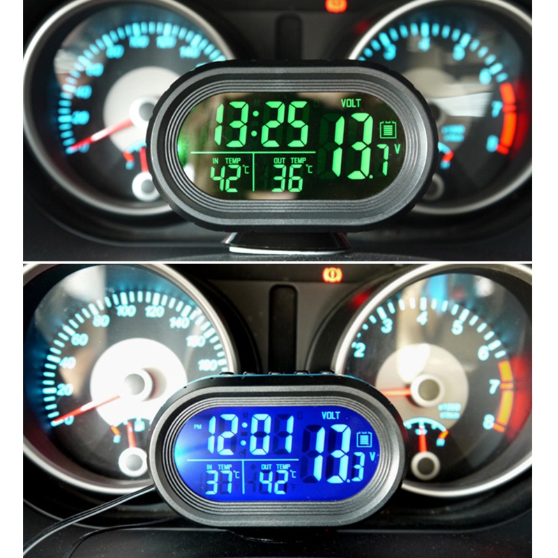 EDB* 3 In 1 Multifunction Digital Time Clock Thermometer Voltmeter LED Display Gauge